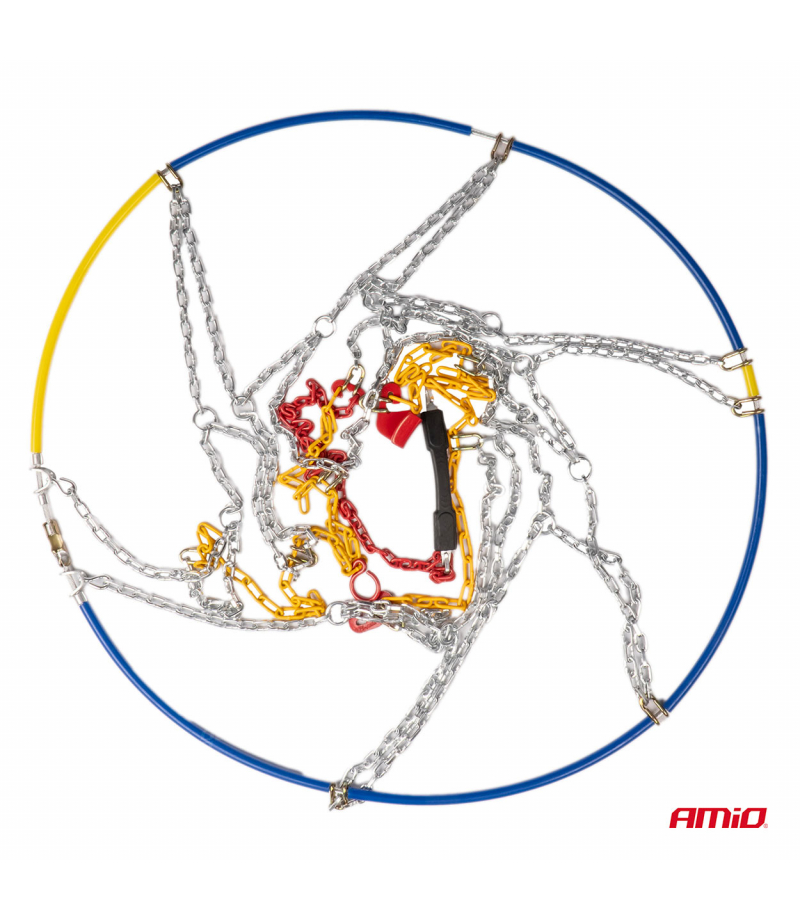 Asymetryczny, rombowy wzór łańcucha, chroniący pojazd przed poślizgiem, szczególnie w trakcie wykonywania manewru skrętu. Szybki montaż bez konieczności najeżdżania samochodem.