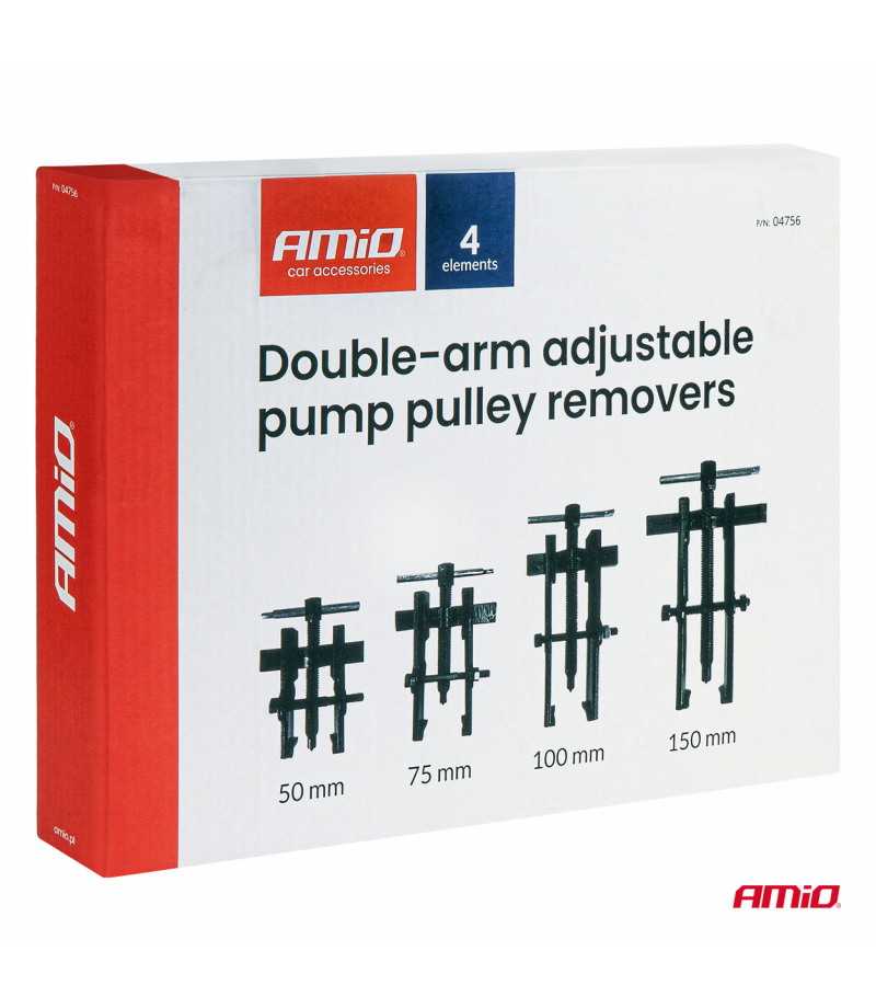 Regulowana konstrukcja dwuramienna pozwala na dopasowanie do średnicy koła pasowego (50 mm, 75 mm, 100 mm, 150 mm), co zapewnia uniwersalność i szerokie zastosowanie w warsztatach mechanicznych. Solidna i wytrzymała konstrukcja narzędzi gwarantuje bezpieczeństwo pracy nawet przy mocno osadzonych elementach.