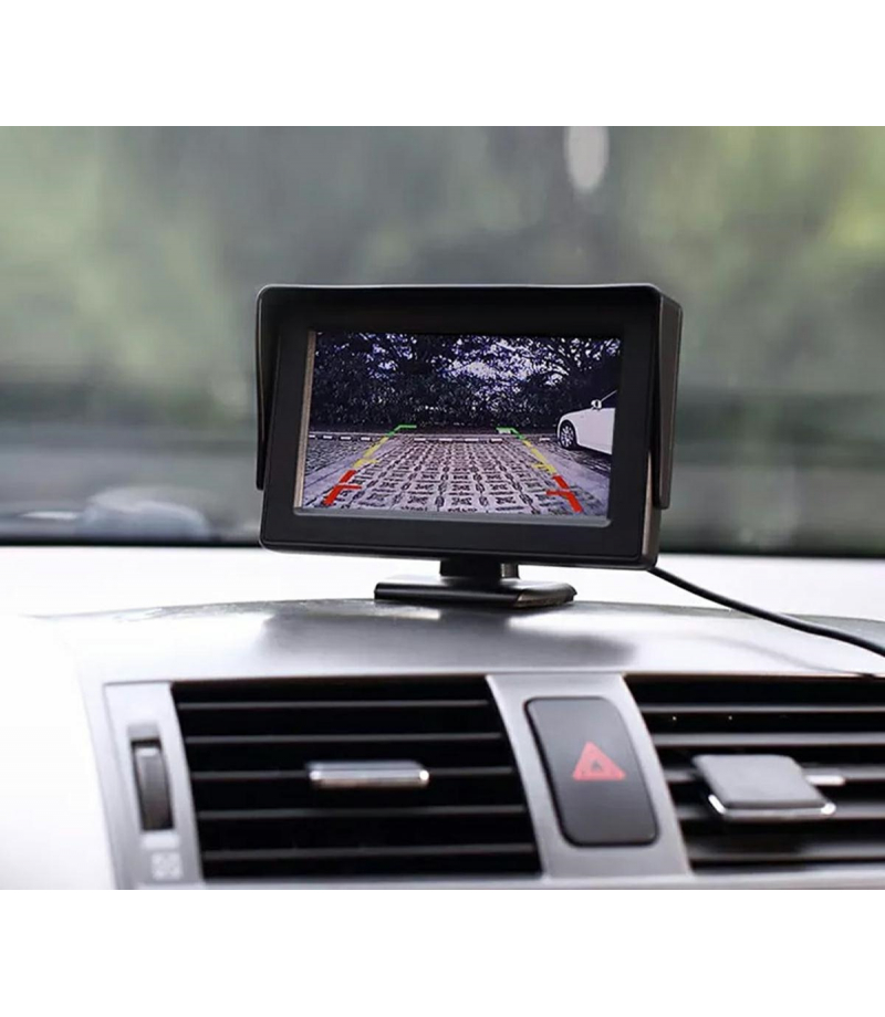 Wyświetlacz LCD o przekątnej 4,3'' dedykowany do samochodowej kamery cofania. Doskonale współpracuje z kamerami samochodowymi wykorzystującymi złącza RCA Cinch. Wyświetlacz automatycznie dopasowuje się do systemów PAL oraz NTSC. Wygodna podstawka umożliwia stabilny montaż na desce rozdzielczej. Monitor posiada możliwość regulacji kąta nachylenia.
