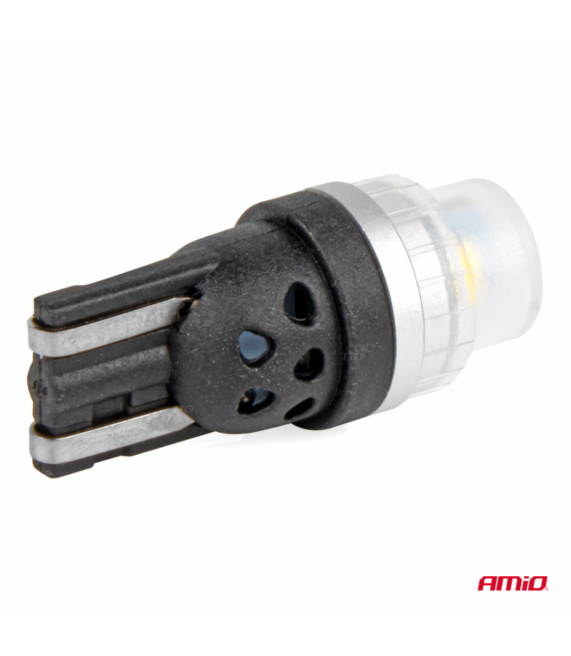Żarówki samochodowe LED marki AMiO są nowoczesnym rozwiązaniem wykorzystującym technologie diod LED. Użyte diody emitują białą barwę światła oraz są pozbawione efektu mrugania. Wysoka jakość wykonania gwarantuje żywotność żarówek do 50 000 godzin, a specjalny układ zasilania nie wymaga przerabiania instalacji elektrycznej w samochodzie umożliwiając bezproblemowy montaż w tradycyjnych oprawach świetlnych, gdzie wcześniej były wykorzystywane zwykłe żarówki.
