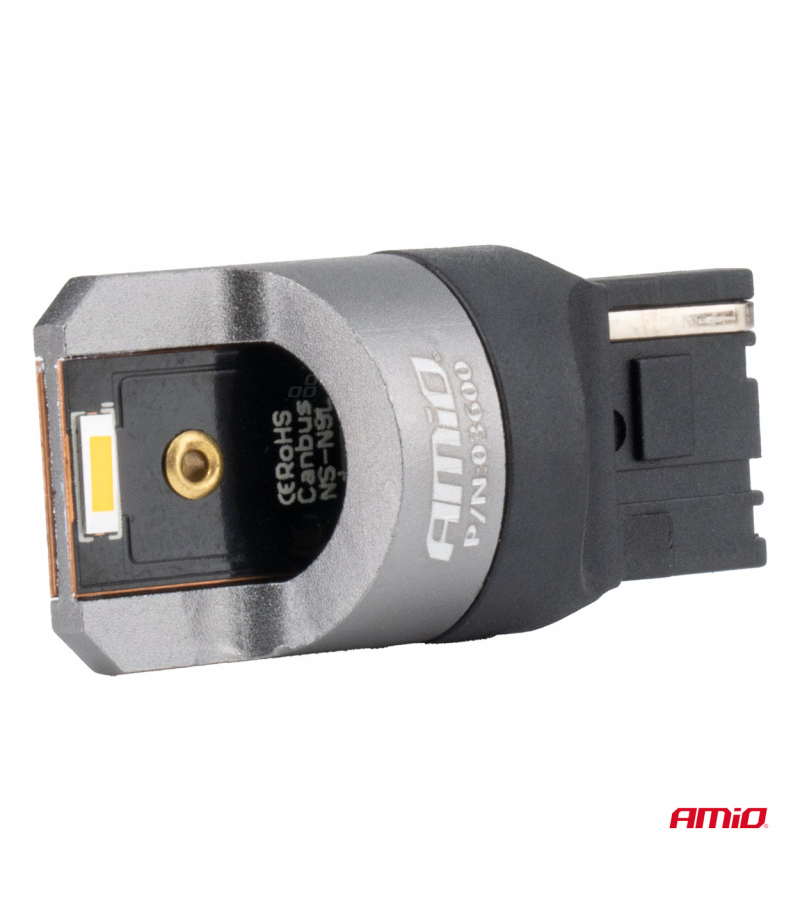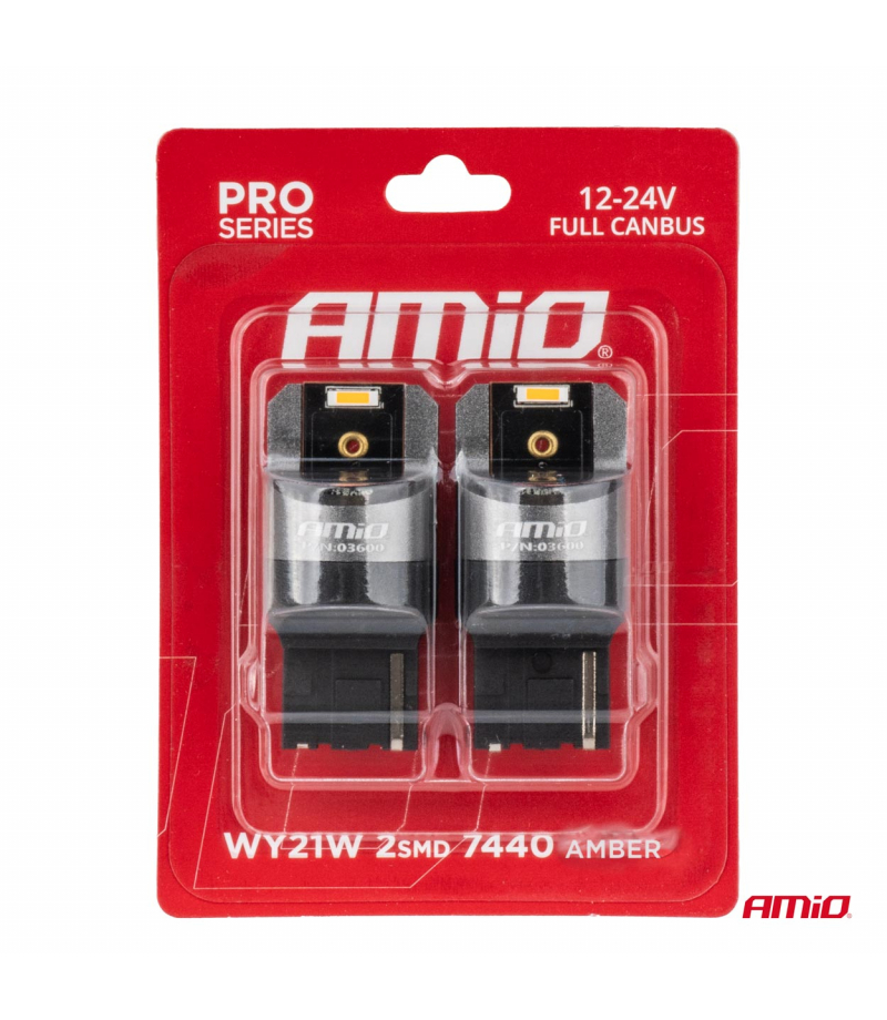 Żarówki samochodowe LED marki AMiO są nowoczesnym rozwiązaniem wykorzystującym technologie diod LED. Użyte diody emitują białą barwę światła oraz są pozbawione efektu mrugania. Wysoka jakość wykonania gwarantuje żywotność żarówek do 50 000 godzin, a specjalny układ zasilania nie wymaga przerabiania instalacji elektrycznej w samochodzie umożliwiając bezproblemowy montaż w tradycyjnych oprawach świetlnych, gdzie wcześniej były wykorzystywane zwykłe żarówki.