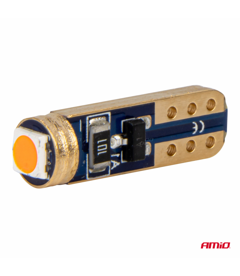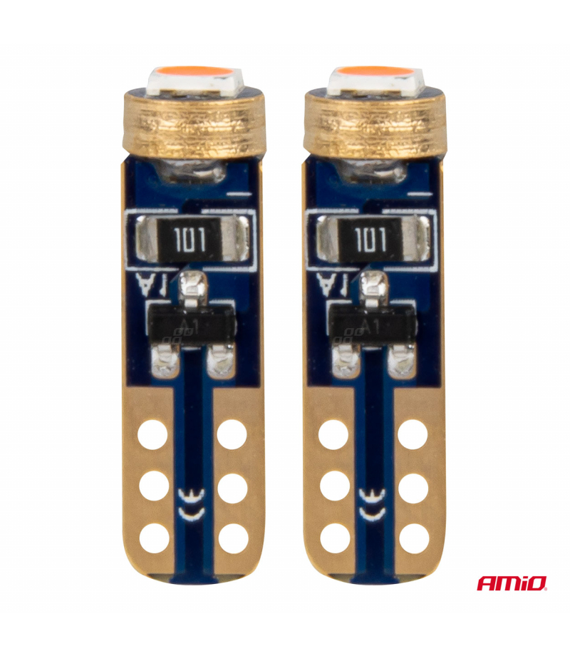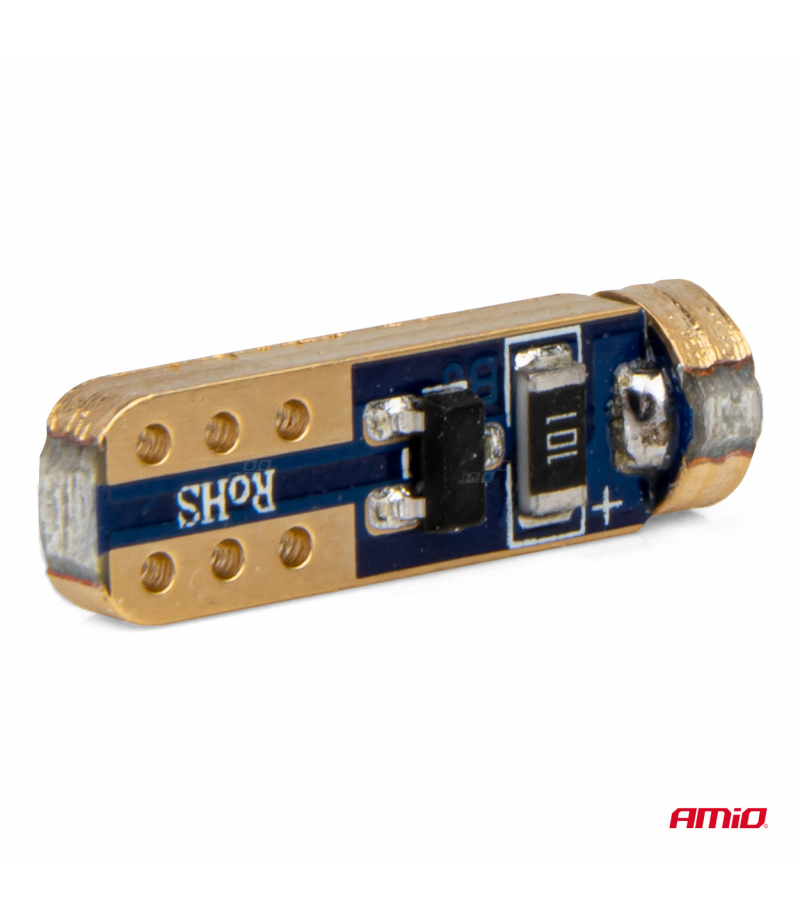 Żarówki samochodowe LED marki AMiO są nowoczesnym rozwiązaniem wykorzystującym technologie diod LED. Użyte diody emitują białą barwę światła oraz są pozbawione efektu mrugania. Wysoka jakość wykonania gwarantuje żywotność żarówek do 50 000 godzin, a specjalny układ zasilania nie wymaga przerabiania instalacji elektrycznej w samochodzie umożliwiając bezproblemowy montaż w tradycyjnych oprawach świetlnych, gdzie wcześniej były wykorzystywane zwykłe żarówki.