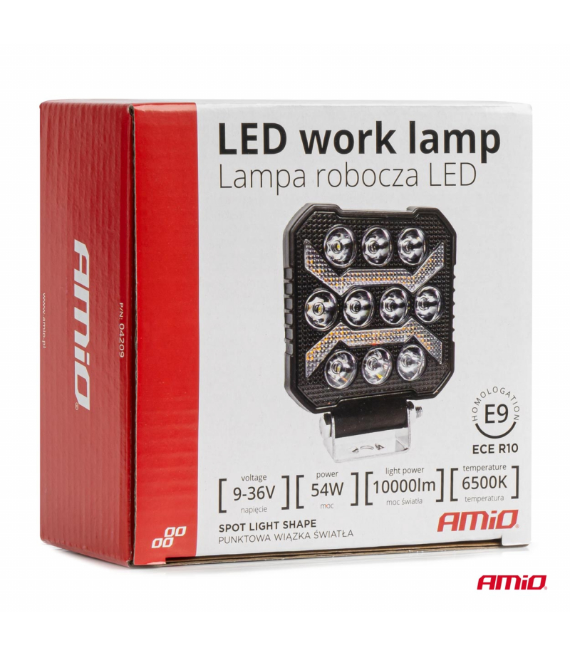 Lampa robocza szperacz LED AWL68 54W 6500K 10000lm 12V 24V AMIO-04209 Odkryj naszą lampę LED AWL68 , która zapewnia niezawodne oświetlenie w każdych warunkach. Dzięki mocy 54W oraz szerokiemu zakresowi napięcia od 9 do 36V , ta lampa robocza o wymiarach 110x110 mm oferuje skupiony strumień światła SPOT...