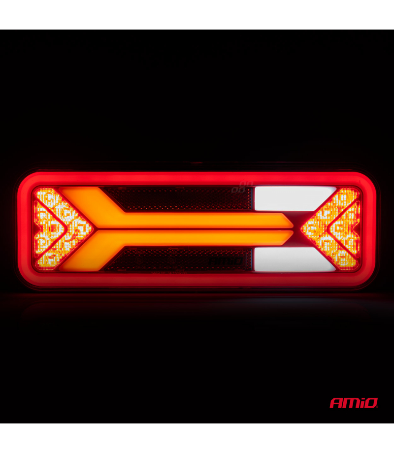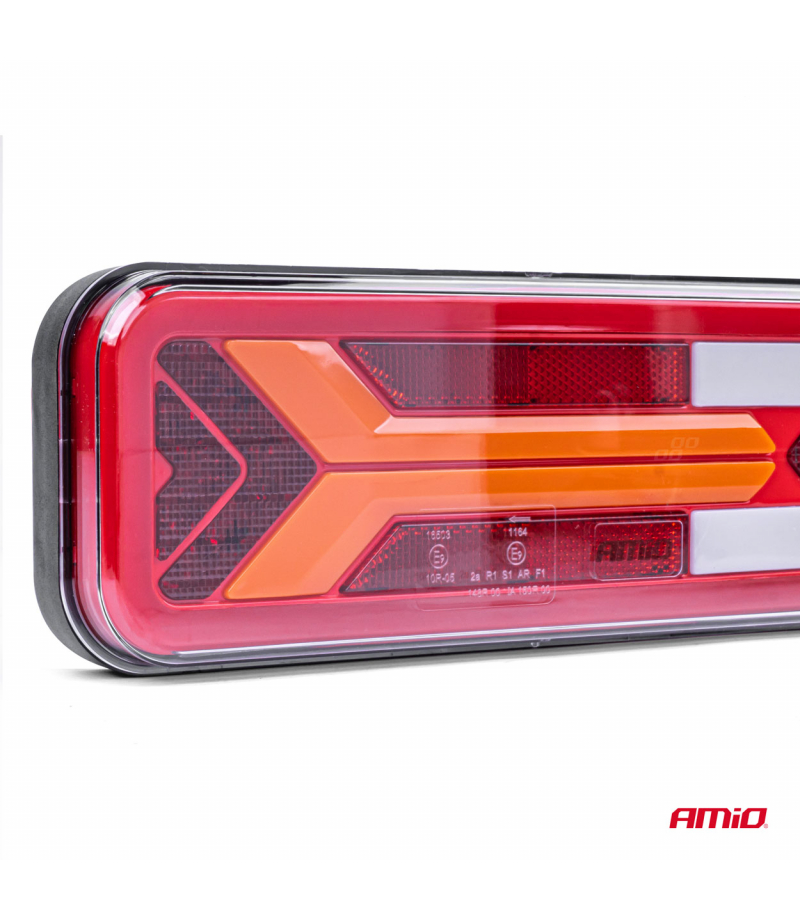 Dynamiczny kierunkowskaz natomiast to efekt wędrującego światła kierunku jazdy w którym każda z diod zapala się z nieco większym opóźnieniem. Lampa może pracować w instalacjach 12V jak i 24V, posiada homologacje kompatybilności elektromagnetycznej i stopień ochrony IP 67. Prawdopodobnie jest to najładniejsza lampa na rynku.