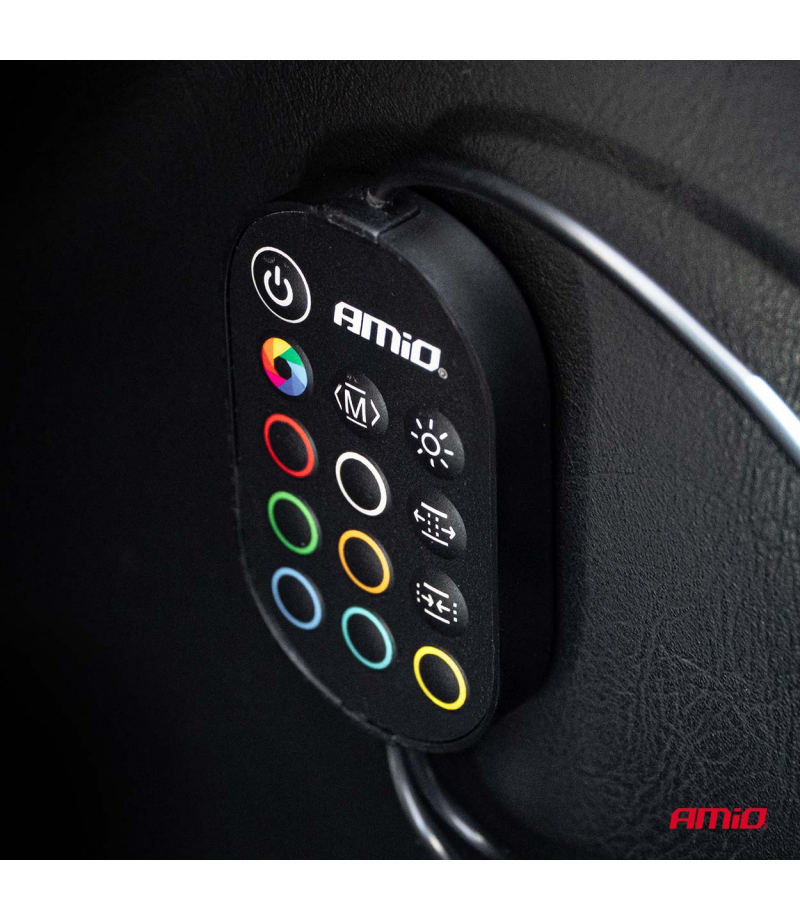 Paski LED COB do samochodu wielobarwne multi kolor RGB z pilotem 2x30cm 12V AMIO-04579 Elastyczne paski LED w technologii RGB, zasilane napięciem 12V. Zestaw obejmuje dwa paski o długości 30 cm oraz sterownik z pilotem, umożliwiający zmianę kolorów i trybów świecenia. Dzięki konstrukcji Flexible paski można łatwo dopasować do powierzchni montażowej. Produkt wyposażony jest w funkcję testową "try me", co ułatwia prezentację działania w...