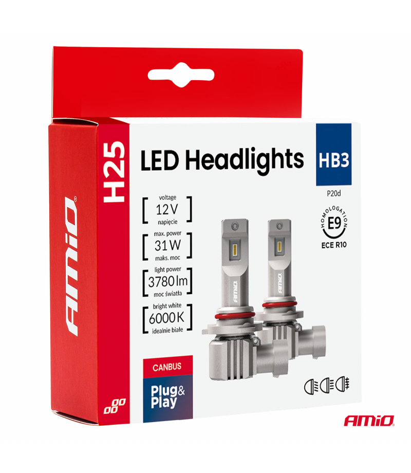 Żarówki samochodowe LED H25 Series HB3 CANBUS 12V 31W to nowoczesne źródło światła o wysokiej wydajności świetlnej 3780 lm i barwie 6000K (biały zimny) . Wykorzystują diody CSP nowej generacji, które zapewniają stabilny strumień świetlny oraz długą żywotność.