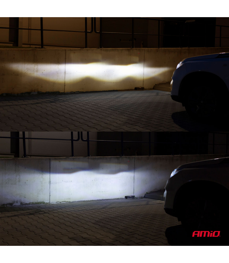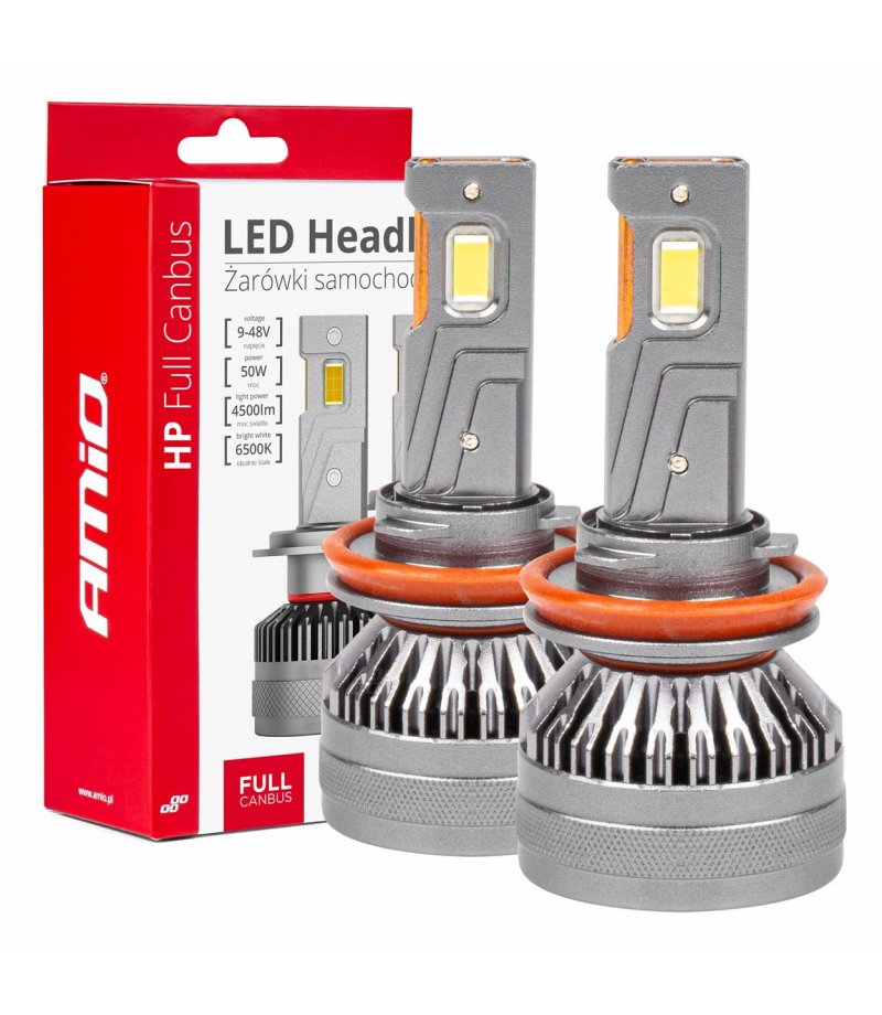 Żarówki LED AMiO seria HP FULL CANBUS charakteryzują się bardzo wysoką jakością wykonania. Proponowany produkt emituje jaśniejsze i bardziej skoncentrowane światło, co pozwala na lepszą widoczność drogi w warunkach ograniczonego oświetlenia, takich jak zmrok, mgła lub deszcz. Źródła światła wykonane w technologii LED są efektywniejsze w procesie przemiany energii elektrycznej na światło widzialne w porównaniu do tradycyjnych żarówek halogenowych. Żarówki te są bardziej odporne na wstrząsy i drgania, co oznacza, że mają dłuższą żywotność niż żarówki halogenowe.