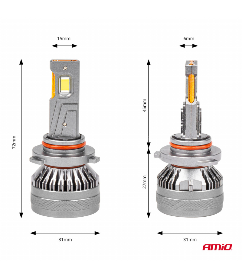 Żarówki LED AMiO seria HP FULL CANBUS charakteryzują się bardzo wysoką jakością wykonania. Proponowany produkt emituje jaśniejsze i bardziej skoncentrowane światło, co pozwala na lepszą widoczność drogi w warunkach ograniczonego oświetlenia, takich jak zmrok, mgła lub deszcz. Źródła światła wykonane w technologii LED są efektywniejsze w procesie przemiany energii elektrycznej na światło widzialne w porównaniu do tradycyjnych żarówek halogenowych. Żarówki te są bardziej odporne na wstrząsy i drgania, co oznacza, że mają dłuższą żywotność niż żarówki halogenowe.