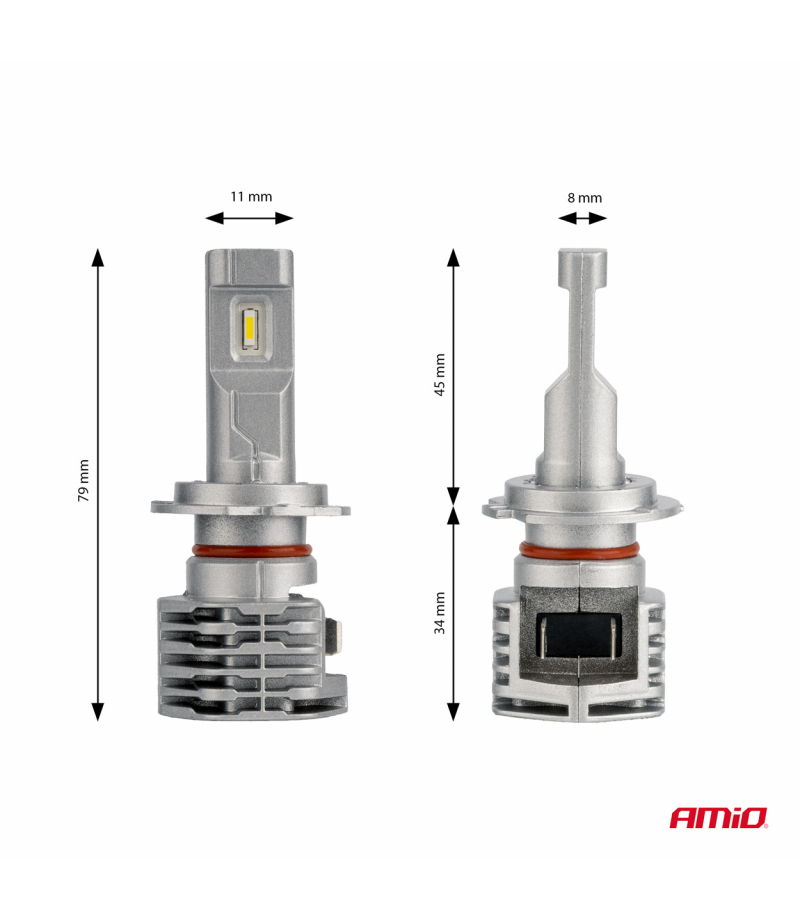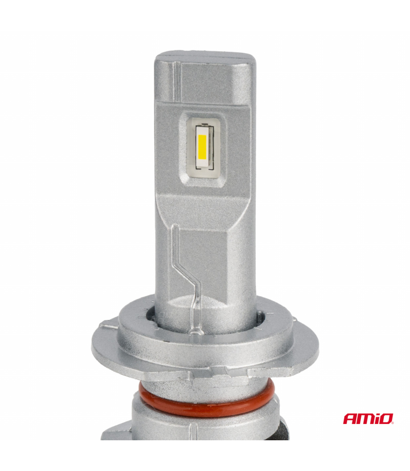 Żarówki LED H7 AMiO seria X1 charakteryzują się bardzo wysoką jakością wykonania. Proponowany zestaw emituje jaśniejsze i bardziej skoncentrowane światło, co pozwala na lepszą widoczność drogi w warunkach ograniczonego oświetlenia, takich jak zmrok, mgła lub deszcz. Źródła światła wykonane w technologii CSP są efektywniejsze w procesie przemiany energii elektrycznej na światło widzialne w porównaniu do tradycyjnych żarówek halogenowych. Żarówki LED są bardziej odporne na wstrząsy i drgania, co oznacza, że mają dłuższą żywotność niż żarówki halogenowe.