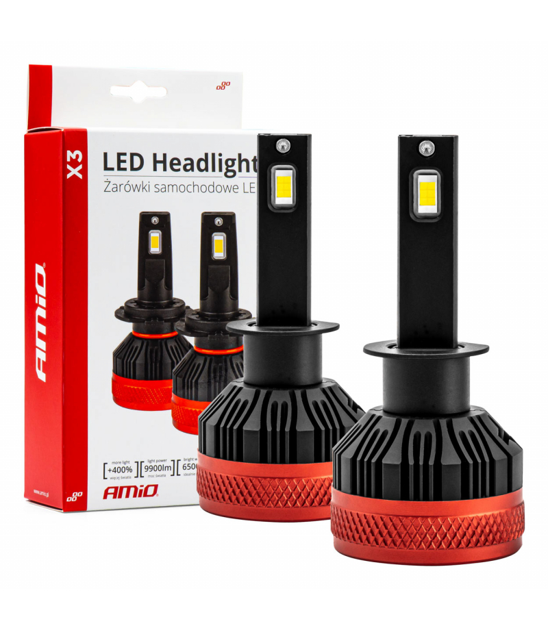 Żarówki LED H1 AMiO seria X3 charakteryzują się bardzo wysoką jakością wykonania. Proponowany produkt emituje jaśniejsze i bardziej skoncentrowane światło, co pozwala na lepszą widoczność drogi w warunkach ograniczonego oświetlenia, takich jak zmrok, mgła lub deszcz. Źródła światła wykonane w technologii CSP są efektywniejsze w procesie przemiany energii elektrycznej na światło widzialne w porównaniu do tradycyjnych żarówek halogenowych. Żarówki LED są bardziej odporne na wstrząsy i drgania, co oznacza, że mają dłuższą żywotność niż żarówki halogenowe.