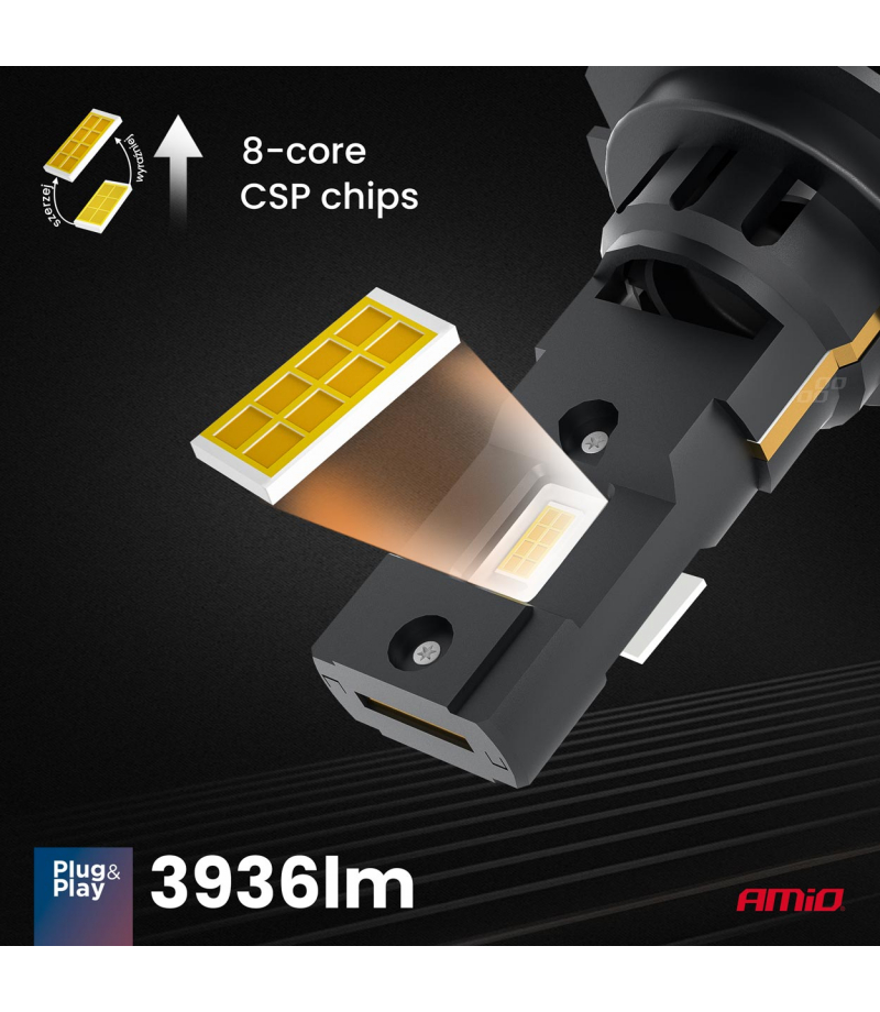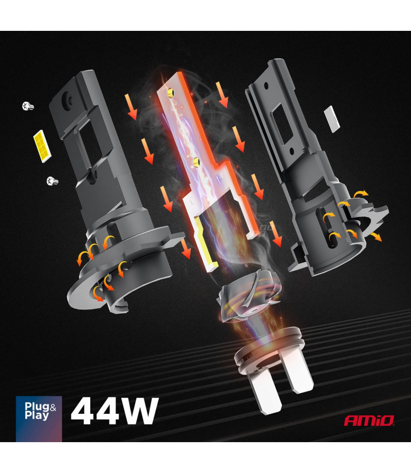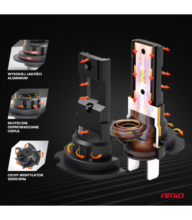 ŻARÓWKI LED AMiO X4 AVIATOR IDEALNIE DOPASOWANE 1 DO 1 Rozmiar jest taki sam jak standardowej żarówki. Zamiennik żarówki H7/H18 Idealnie dopasowany model - zapomnij o problemach z montażem, przeróbkach, nie zamkniętych parujących reflektorach, przycinaniu obudowy i adapterach. W budowie zastosowano takie materiały jak aluminium i miedź, zapewnia wyjątkową żywotność i skuteczne odprowadzanie ciepła Optymalna geometria i rozmieszczenie diód...