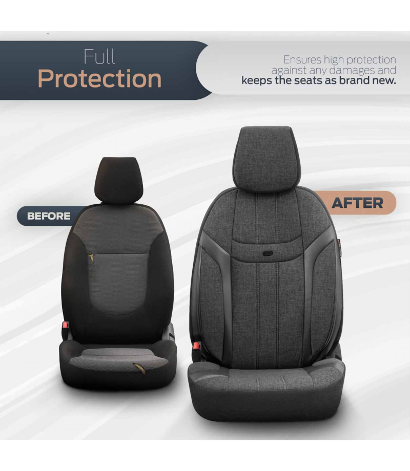 Pokrowce zasłaniają fotele w całości, przez co znakomicie chronią fotele przed zabrudzeniem, są trwałe i łatwe do czyszczenia, a dzięki modnym wzorom odświeżają wnętrze oraz poprawiają jego estetykę.