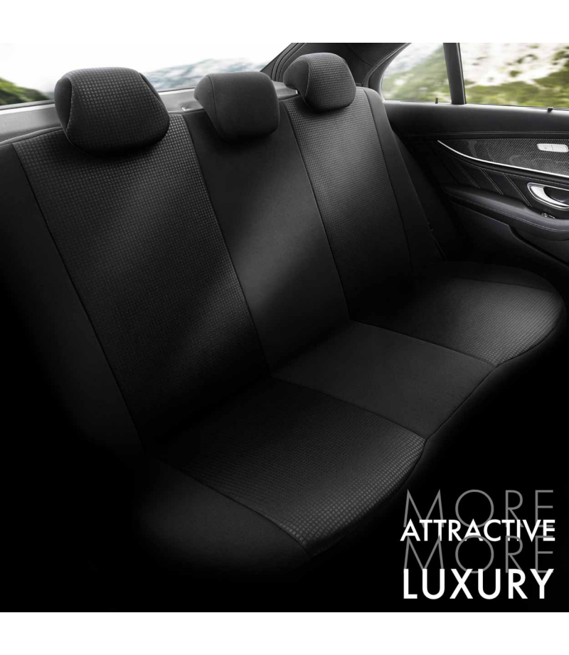 Pasują do większości siedzeń dostępnych na rynku, (pokrowiec tylnej kanapy w całości bez zamków).