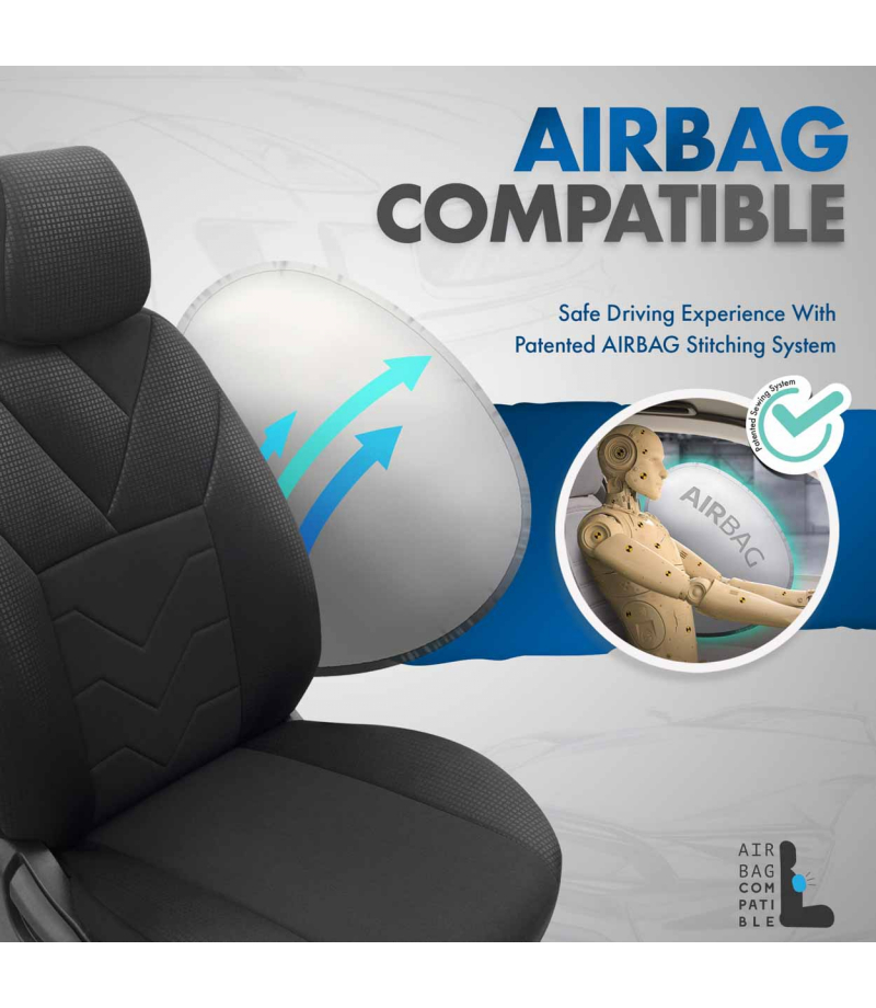 Pokrowce w standardzie posiadają certyfikowany szew AIRBAG, dzięki czemu przystosowane są do samochodów zarówno z bocznymi poduszkami powietrznymi w fotelach, jak i do standardowych siedzeń. Dzięki zastosowaniu specjalnego szwu, zakrywają fotele w całości nie zakłócając pracy AIRBAG-ów.