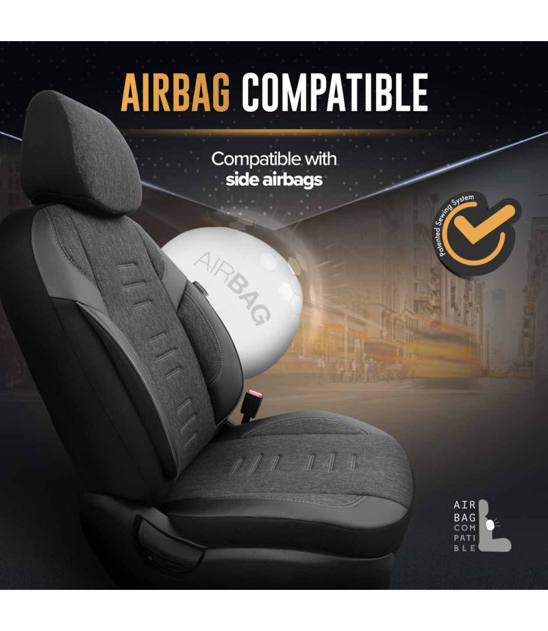Pokrowce w standardzie posiadają certyfikowany szew AIRBAG, dzięki czemu przystosowane są do samochodów zarówno z bocznymi poduszkami powietrznymi w fotelach, jak i do standardowych siedzeń. Dzięki zastosowaniu specjalnego szwu, zakrywają fotele w całości nie zakłócając pracy AIRBAG-ów.