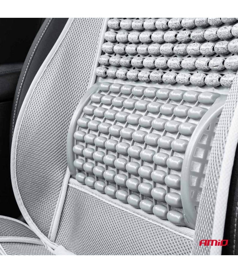 Mata do samochodu posiada specjalnie wyprofilowaną formę z tłoczeniami, które odzwierciedlają poprawne ułożenie ciała względem fotela. Dodatkowo mata ma poduszkę lędźwiową, która podpiera newralgiczną część pleców podczas użytkowania. Nakładka na fotel samochodowy zapewnia komfort podróżowania nawet przy wyższych temperaturach. Natomiast w chłodniejszych porach roku izoluje ciało od wychłodzonej powierzchni fotela. Elementy koralikowe zwiększają wygodę i komfort...
