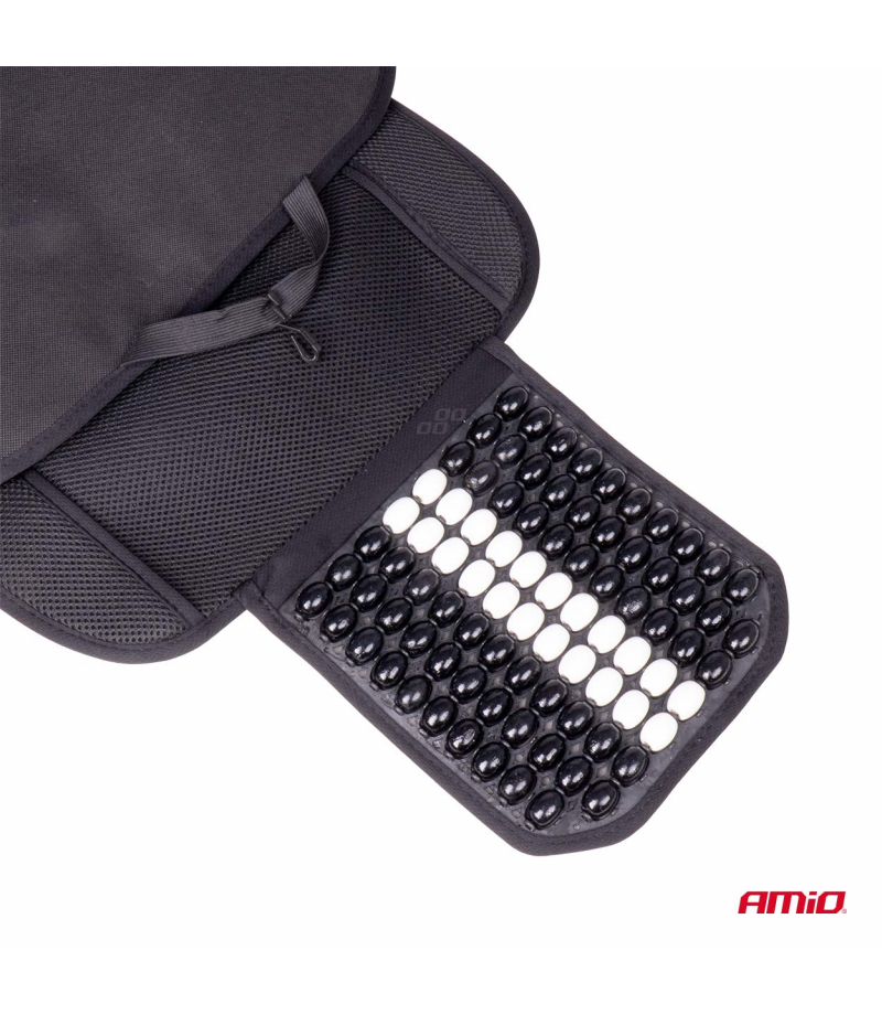 Mata do samochodu posiada specjalnie wyprofilowaną formę z tłoczeniami, które odzwierciedlają poprawne ułożenie ciała względem fotela. Dodatkowo mata ma poduszkę lędźwiową, która podpiera newralgiczną część pleców podczas użytkowania. Nakładka na fotel samochodowy zapewnia komfort podróżowania nawet przy wyższych temperaturach. Natomiast w chłodniejszych porach roku izoluje ciało od wychłodzonej powierzchni fotela. Elementy koralikowe zwiększają wygodę i komfort...