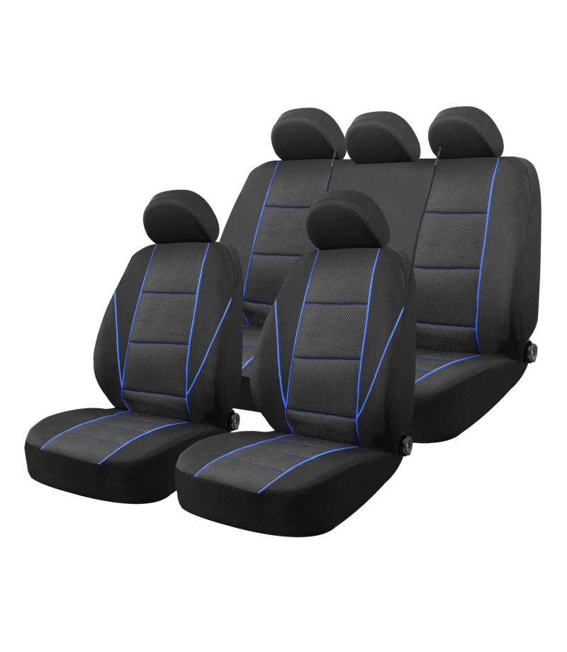 Zestaw 9-częściowy obejmuje pokrowce na dwa fotele przednie, tylną kanapę dzieloną oraz komplet zagłówków. Uniwersalne dopasowanie do większości modeli samochodów osobowych.