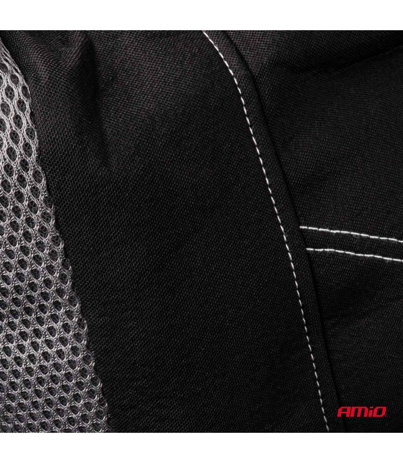 Pokrowce samochodowe na fotele uniwersalne przód tył komplet SC19 AMIO-04619 Kompletny zestaw pokrowców samochodowych na przód i tył pojazdu osobowego. Wykonane z wytrzymałego materiału o wysokiej odporności na przetarcia i zabrudzenia. Pokrowce przystosowane do siedzeń z poduszkami powietrznymi – nie blokują ich działania. Posiadają otwory na zagłówki i pasy bezpieczeństwa. Tylne części pokrowców w pełni kryte, co zapewnia ochronę całych przednich foteli, estetyczny...