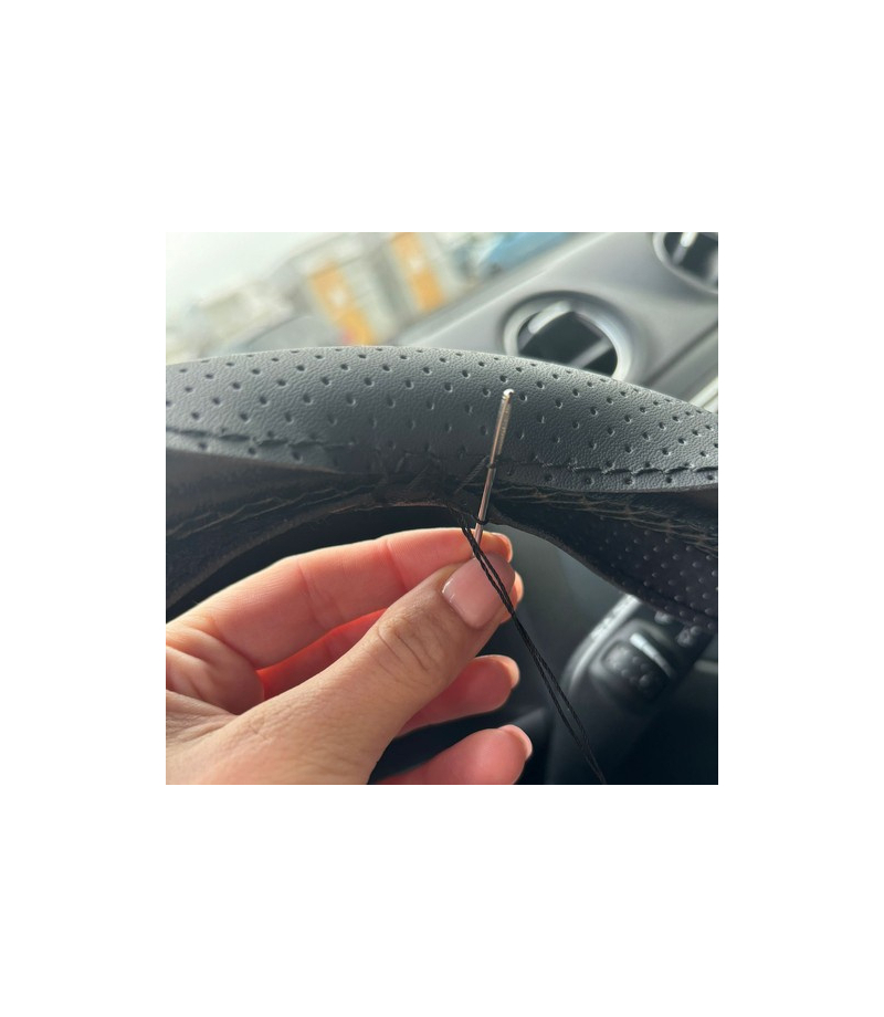 Montaż pokrowca polega na nałożeniu go na kierownicę i obszyciu dookoła dołączoną, specjalną igłą i dratwą. Sam może wydawać się trudny, a obszycie wymaga nieco cierpliwości, ale ostatecznie pokrowiec dobrze przylega i nie przesuwa się.