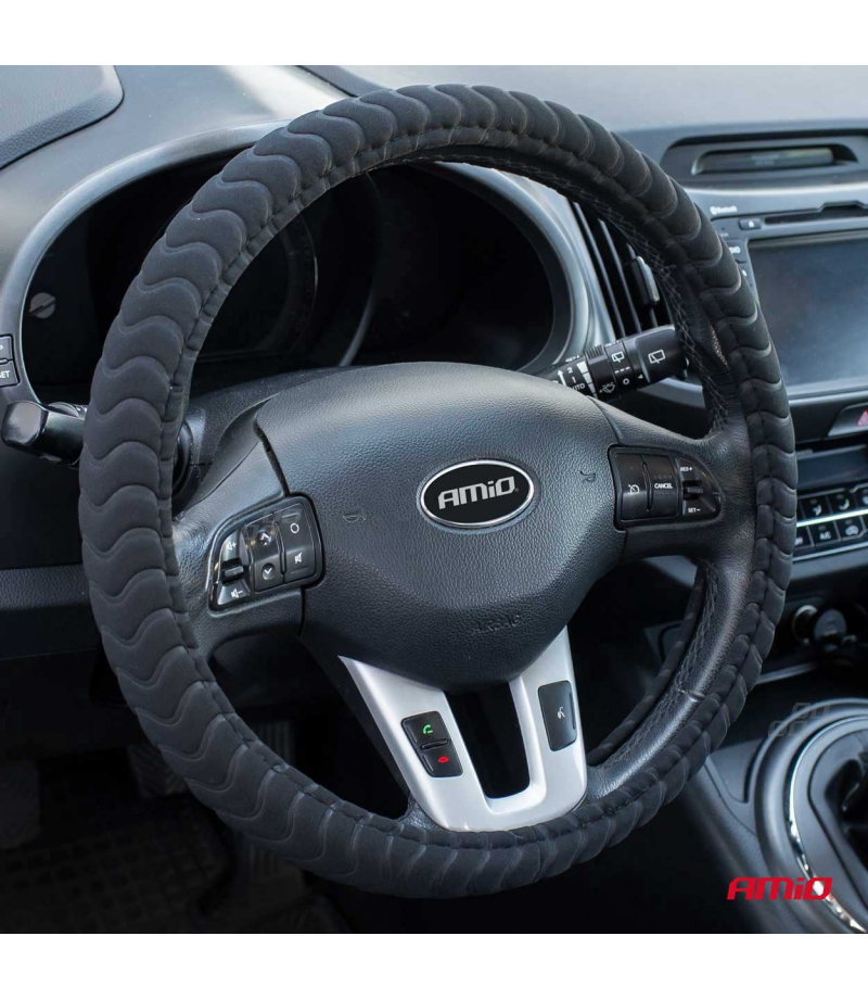 Pokrowiec jest bardzo wygodny oraz świetnie trzyma się w dłoni podczas jazdy. Szybki i prosty montaż, polega wyłącznie na nałożeniu pokrowca na kierownicę. Zastosowanie najwyższej jakości materiałów sprawia, że pokrowiec służy przez długie lata i świetnie prezentuje się w samochodzie. Ważne jest to, aby odpowiednio dobrać rozmiar nakładki do swojej kierownicy. To nic trudnego, wystarczy zmierzyć średnicę kierownicy w swoim aucie od zewnętrzne strony. Elementy są ze sobą zszyte...