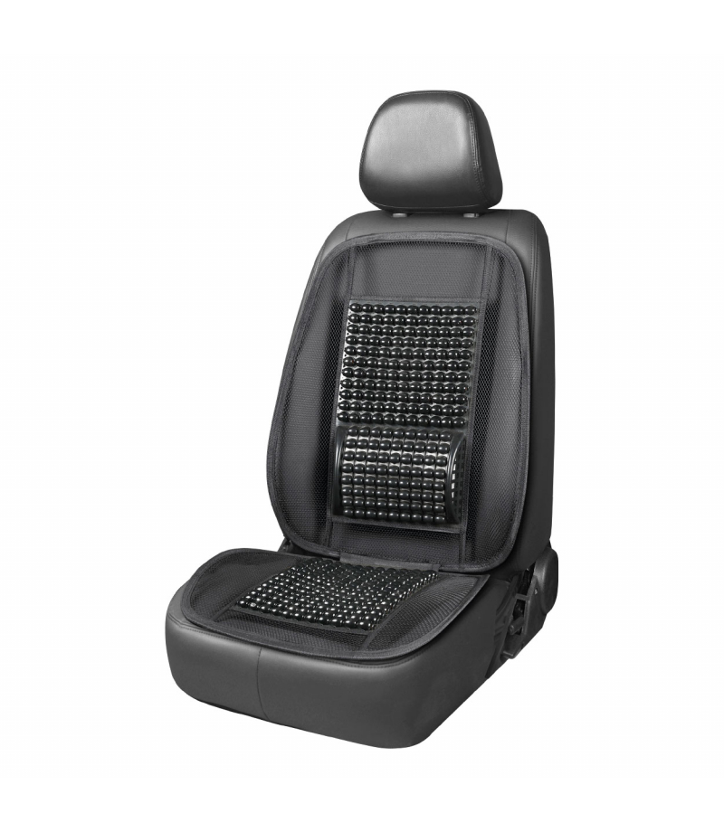 Mata do samochodu posiada specjalnie wyprofilowaną formę z tłoczeniami, które odzwierciedlają poprawne ułożenie ciała względem fotela. Dodatkowo mata ma poduszkę lędźwiową, która podpiera newralgiczną część pleców podczas użytkowania. Nakładka na fotel samochodowy zapewnia komfort podróżowania nawet przy wyższych temperaturach. Natomiast w chłodniejszych porach roku izoluje ciało od wychłodzonej powierzchni fotela. Elementy koralikowe zwiększają wygodę i komfort...