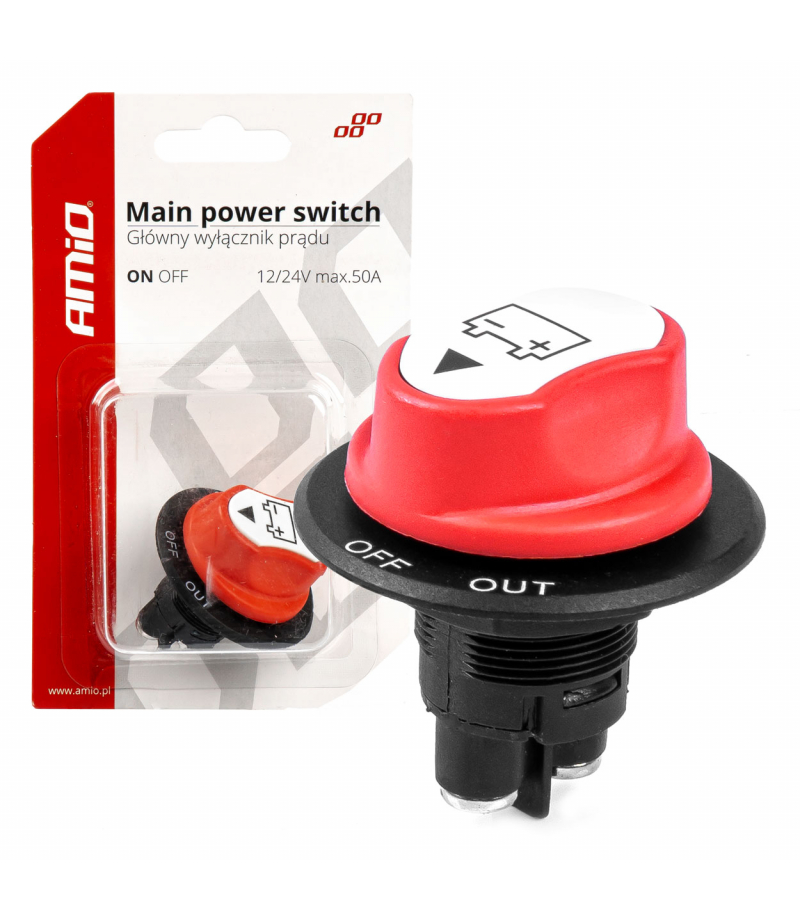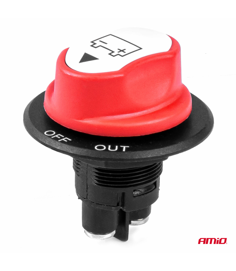 WYŁĄCZNIK ODŁĄCZNIK PRĄDU AKUMULATORA HEBEL PRĄD ROBOCZY 50A PRĄD CHWILOWY 75A PRĄD SZCZYTOWY 300A HEBEL RYGIEL 3-pozycyjny uniwersalny do wbudowania ON-OFF-OUT Średnica montażowa: 22mm Średnica zewnętrzna: 45mm Wysokość całkowita: 51mm Wysokość po zamontowaniu: 20mm Przyłącza elektryczne: M4 Napięcie: max 50V Zastosowanie w instalacji elektrycznej pojazdów osobowych, ciężarowych, maszynach rolniczych i budowlanych, przyczepach kempingowych, łodziach...