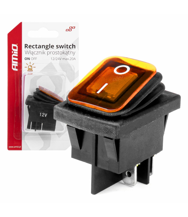 Włącznik uniwersalny czarny prostokątny 12/24V 20A Parametry: 12/24V 20A Funkcja: ON-OFF Kolor: czarny Żółte podświetlenie Zakres temperatur pracy: -30ºC - +80ºC Trwałość: 10000 cykl Otwór montażowy: 22mm x 30mm Wysoka jakość wykonania, gwarancja długotrwałej niezawodności. Napięcie [V]: 12-24 Ilość w opakowaniu [szt.]: 1 Producent: AMiO Nr katalogowy: 03091 Kod kreskowy EAN: 5903293030912 Wymiary opakowania: 3cm x...