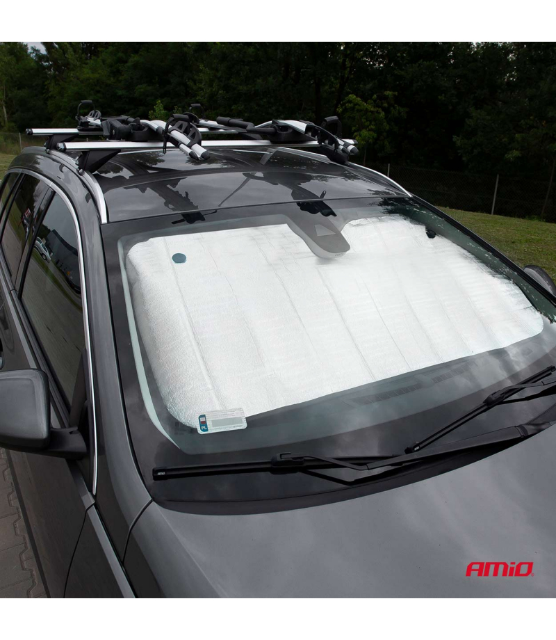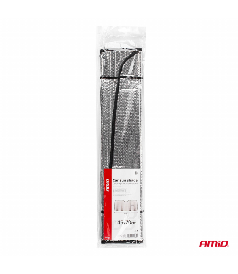 Osłona na szybę 145x70cm przeciwsłoneczna przeciwszronowa AMIO-01532 Powlekana aluminium mata na szybę samochodową! Doskonale sprawdzi się jako ochrona przed słońcem podczas upalnych dni jak również pogromca szronu podczas silnych mrozów! Na mroźne dni Osłona antyszronowa znakomicie chroni szybę Twojego samochodu przed skutkami mroźnej aury takimi jak śnieg, lód...