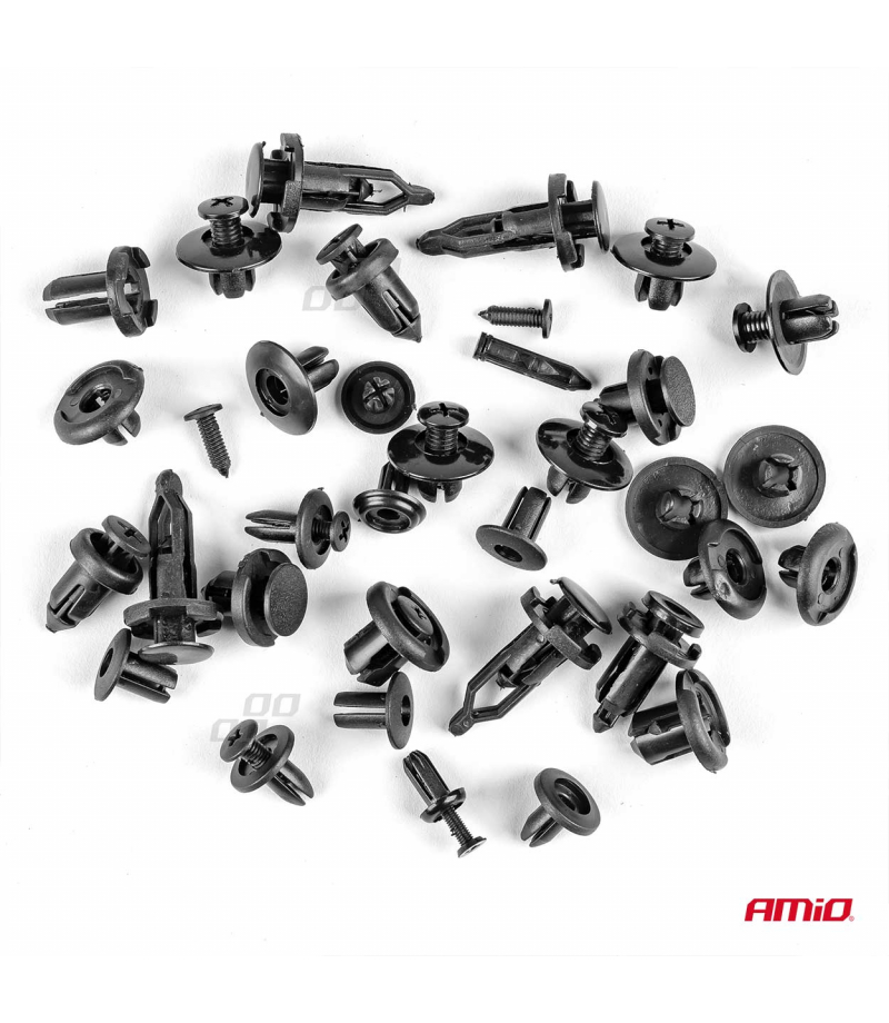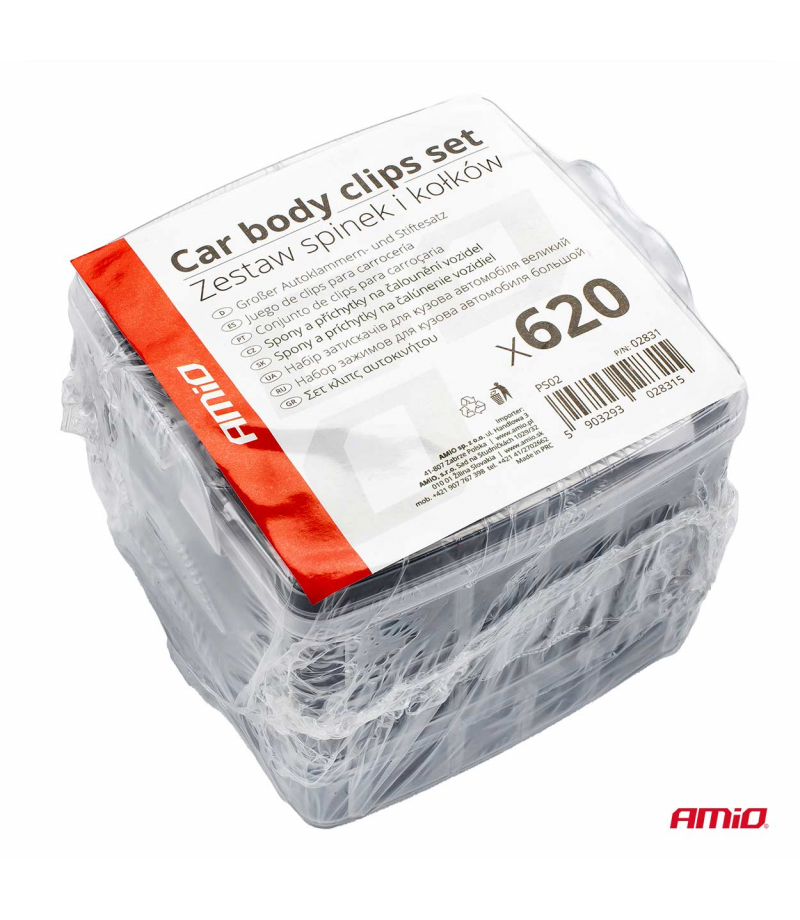 Zestaw 620 ELEMENTÓW, w skład którego wchodzi 16 najpopularniejszych rozmiarów klipsów i łączników mocujących. Uniwersalne klipsy pasują do większości marek samochodów. Klipsy - spinki z tworzywa sztucznego świetnie sprawdzą się jako elementy do wykończenia wnętrza samochodu, mocowania błotnika czy zderzaka, jak również inne uniwersalne zastosowania. Odporne na warunki atmosferyczne - wodoodporne klipsy mocujące nie rdzewieją, ani nie korodują w złych...
