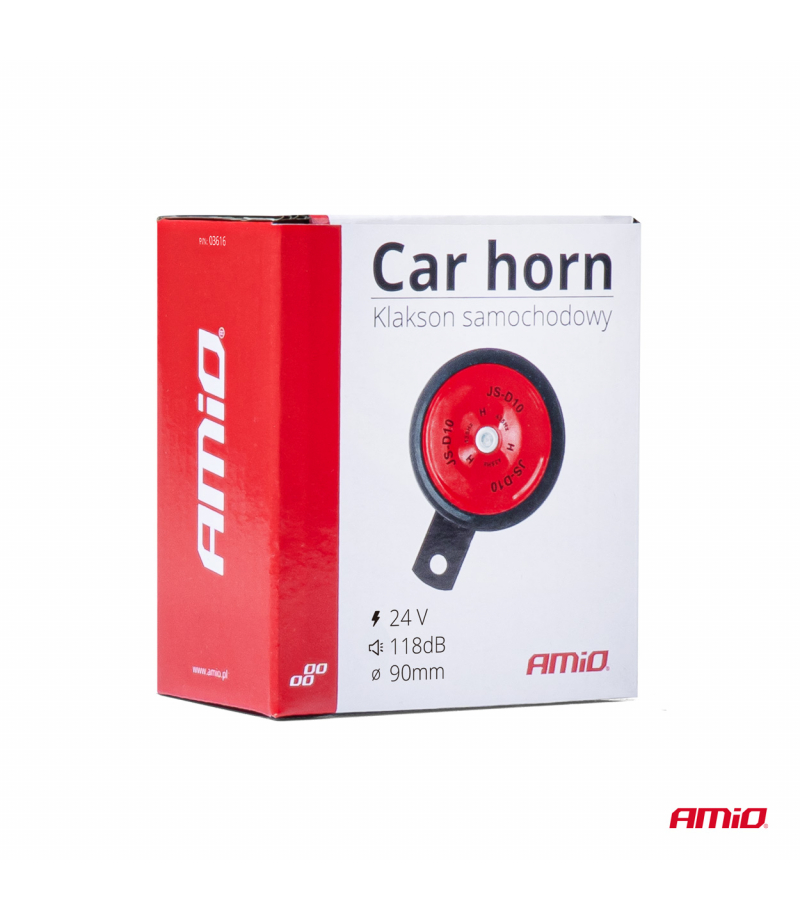 Wysokiej jakości jednotonowy klakson w solidnej obudowie, zasilany napięciem 24V.