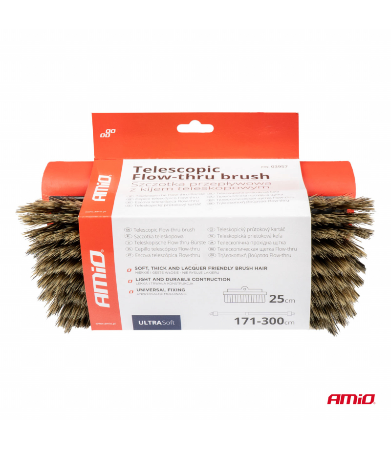 Teleskopowa szczotka przepływowa jest idealnym narzędziem do czyszczenia powierzchni zewnętrznych pojazdów oraz innych elementów takich jak panele fotowoltaiczne . Jej unikalna konstrukcja pozwala na regulację długości, umożliwiając dotarcie nawet do wszystkich trudno dostępnych miejsc. Wyposażona w miękkie włosie, delikatnie usuwa brud i zanieczyszczenia, nie ryzykując przy tym zarysowania powierzchni. Dzięki zastosowaniu przepływu wody, umożliwia skuteczne płukanie i usuwanie zabrudzeń oraz zdecydowanie ułatwia pracę. To niezastąpione narzędzie dla osób, które dbają o czystość swojego otoczenia, bez względu na to, czy pracują w ogrodzie, na tarasie czy na samochodzie.