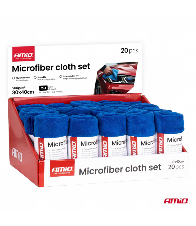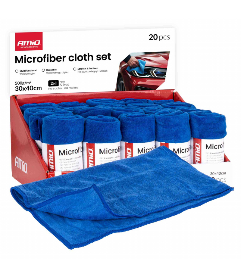 Zestaw ściereczek z mikrofibry 20szt. 500gsm 30x40cm AMIO-04490 Profesjonalny zestaw ściereczek z mikrofibry o gramaturze 500 GSM, przeznaczony do czyszczenia i pielęgnacji różnych powierzchni. Specyfikacja: Ilość w zestawie: 20 sztuk Gramatura: 500 GSM Wymiary: 30×40 cm Materiał: mikrofibra premium...