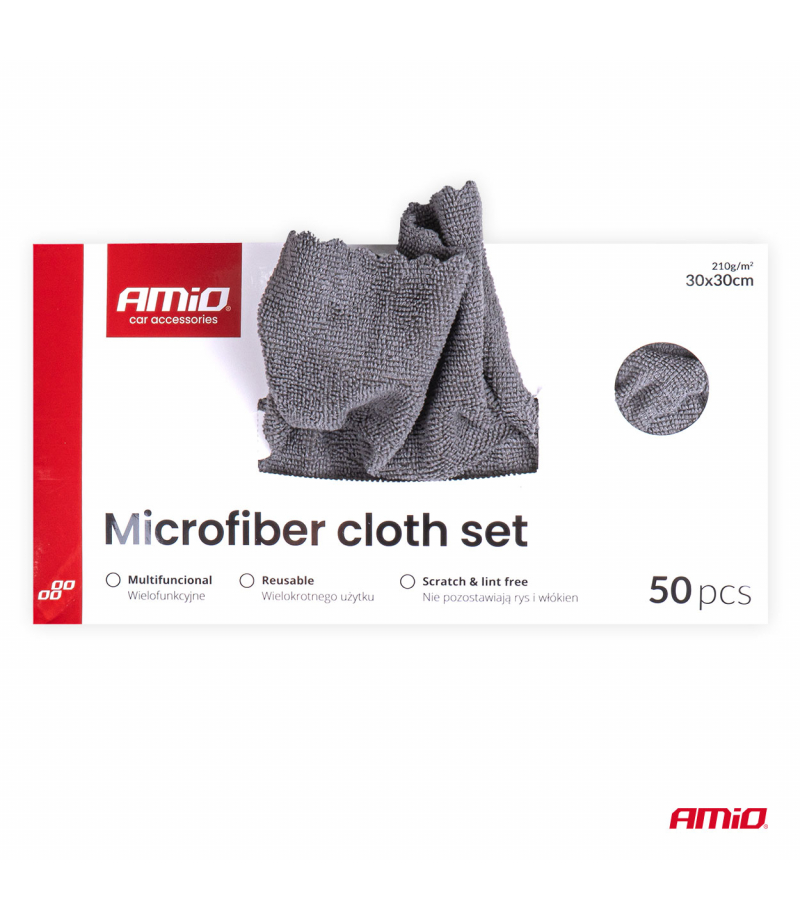 Zestaw ściereczek z mikrofibry 50szt. 210gsm 30x30cm AMIO-04492 Praktyczny zestaw ściereczek z mikrofibry o gramaturze 210 GSM, pakowanych zbiorczo w kartonowe pudełko. Ściereczki uniwersalnego zastosowania – idealne do czyszczenia, polerowania i osuszania różnych powierzchni. Dzięki ekonomicznemu opakowaniu świetnie sprawdzą się w warsztatach, myjniach, serwisach oraz punktach sprzątających. Specyfikacja:...