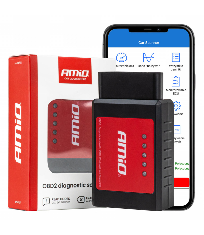 Skaner tester interfejs diagnostyczny OBD2 BT XL AMIO-04733 Nowoczesny interfejs diagnostyczny AMiO OBD2 BT XL umożliwia diagnostykę pojazdów za pomocą smartfona, tabletu lub komputera. Skaner diagnostyczny umożliwia bezprzewodową diagnostykę pojazdów obsługujących standard OBD2. Dzięki wsparciu szerokiego zakresu protokołów komunikacyjnych, urządzenie jest niezastąpione w warsztatach, serwisach mobilnych oraz dla profesjonalnych użytkowników diagnostyki pojazdów. Obsługuje modele...