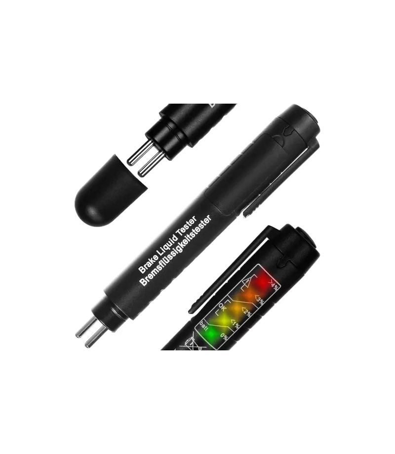 TESTER PŁYNU HAMLCOWEGO KOMPAKTOWE ROZMIARY – tester ma niewielkie wymiary, wielkością przypomina marker. Narzędzie zmieści się do choćby nawet do podręcznej walizki z narzędziami, którą wozimy w aucie, a nawet w kieszeni . DOKŁADNY - zasada działania testera opiera się na pomiarze zawartości wody w płynie hamulcowym. Wystarczy, że zanurzysz elektrody w płynie . Dzięki dokładnemu pomiarowi za pomocą wskaźników w postaci 5 diod LED, masz pewność, że uzyskasz precyzyjny...
