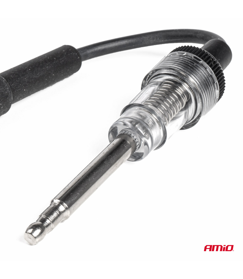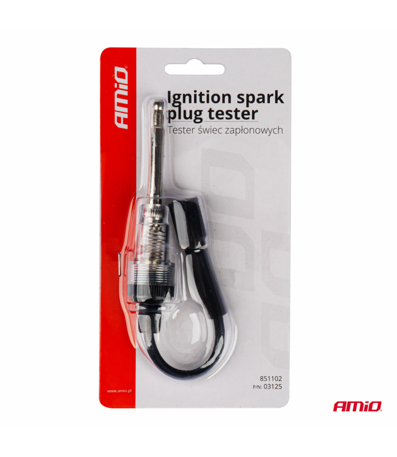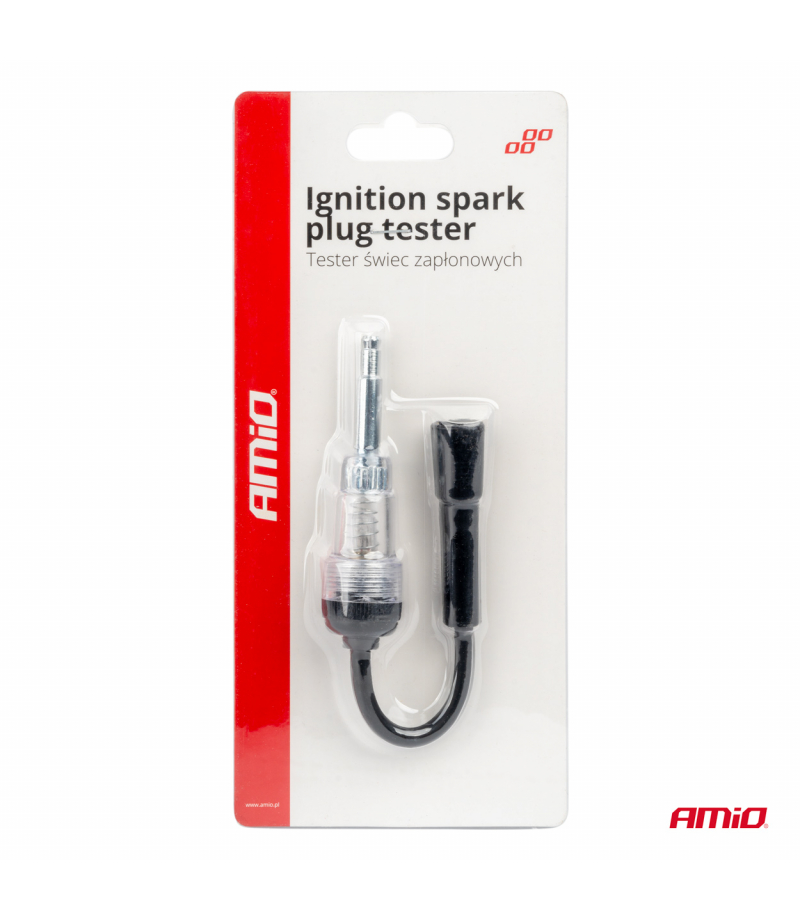 Tester do sprawdzania układu zapłonowego. Urządzenie pozwala w łatwy sposób zdiagnozować uszkodzenia cewki zapłonowej oraz sprawdzić jakość i siłę iskry w świecy zapłonowej. Tester podłączany pomiędzy kabel wysokiego napięcia, a świecę zapłonową.