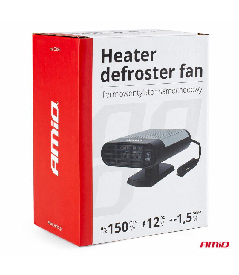 Nagrzewnica samochodowa, odmrażacz szyby, wentylator. Produkt posiada funkcje ciepłego i zimnego powietrza.. Przystosowany do zasilania z gniazda zapalniczki o napięcie 12 V. Do wyboru funkcji służy przełącznik umieszczony na obudowie. Regulowany uchwyt mocujący na taśmę klejącą. SPECYFIKACJA: Napięcie: 12 V DC Max. prąd: 13A Max. moc: 150W Długość kabla: 1,5 m Materiał: ABS Ilość w opakowaniu [szt.]: 1 Producent: AMiO Nr katalogowy: 02899 Kod...