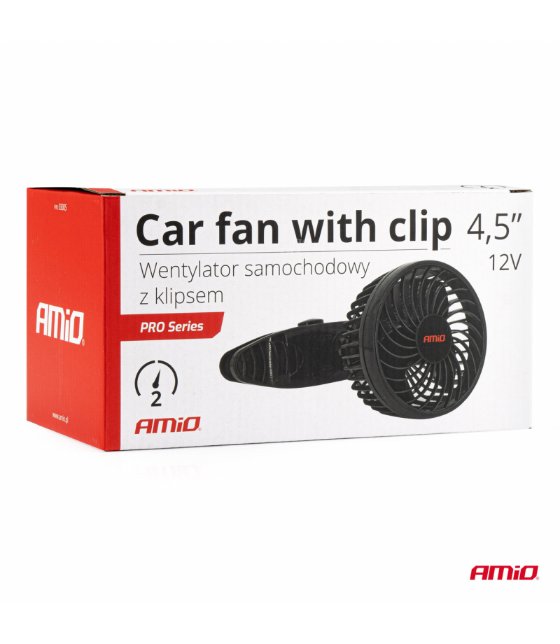 AMiO PRO WIATRAK WENTYLATOR SAMOCHODOWY ZASILANY Z ZAPALNICZKI SAMOCHODOWEJ 12V 11,50 CM MOCOWANY NA KLIPS Doskonały, cichy a przy tym bardzo wydajny wentylator renomowanej firmy, zapewniającą silny podmuch powietrza, tak bardzo potrzebny każdemu w upalne dni kiedy podróżujesz samochodem lub stoisz w korku. Wentylator posiada dwa tryby prędkości , więc możesz wybrać taki, który będzie dla Ciebie najwygodniejszy. Zastosowane rozwiązanie - klips montażowy (tzw....