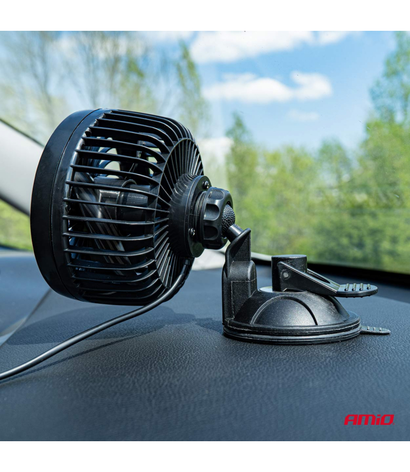 AMiO PRO WIATRAK WENTYLATOR SAMOCHODOWY ZASILANY Z ZAPALNICZKI SAMOCHODOWEJ 12V 11,50 CM MOCOWANY NA PRZYSSAWKĘ Doskonały, cichy a przy tym bardzo wydajny wentylator renomowanej firmy, zapewniającą silny podmuch powietrza, tak bardzo potrzebny każdemu w upalne dni kiedy podróżujesz samochodem lub stoisz w korku. Wentylator posiada dwa tryby prędkości , więc możesz wybrać taki, który będzie dla Ciebie najwygodniejszy. Solidna przyssawka dzięki której możemy zamocować...
