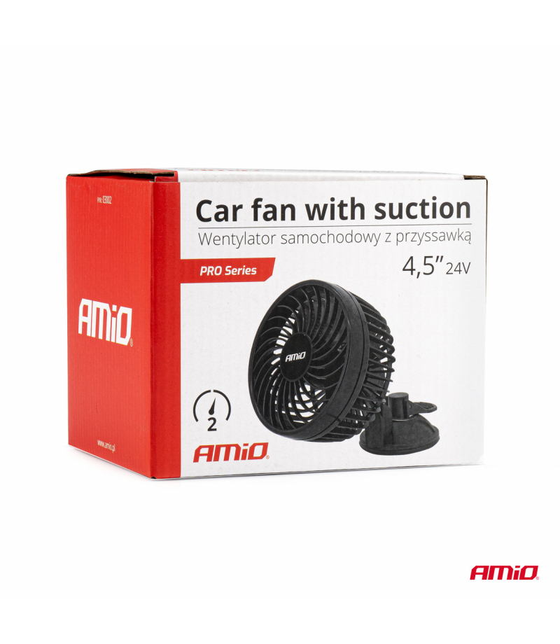 AMiO PRO WIATRAK WENTYLATOR SAMOCHODOWY ZASILANY Z ZAPALNICZKI SAMOCHODOWEJ 24V 11,5 CM MOCOWANY NA PRZYSSAWKĘ Doskonały, cichy a przy tym bardzo wydajny wentylator renomowanej firmy, zapewniającą silny podmuch powietrza, tak bardzo potrzebny każdemu w upalne dni kiedy podróżujesz samochodem lub stoisz w korku. Wentylator posiada dwa tryby prędkości , więc możesz wybrać taki, który będzie dla Ciebie najwygodniejszy. Solidna przyssawka dzięki której możemy zamocować wentylator...