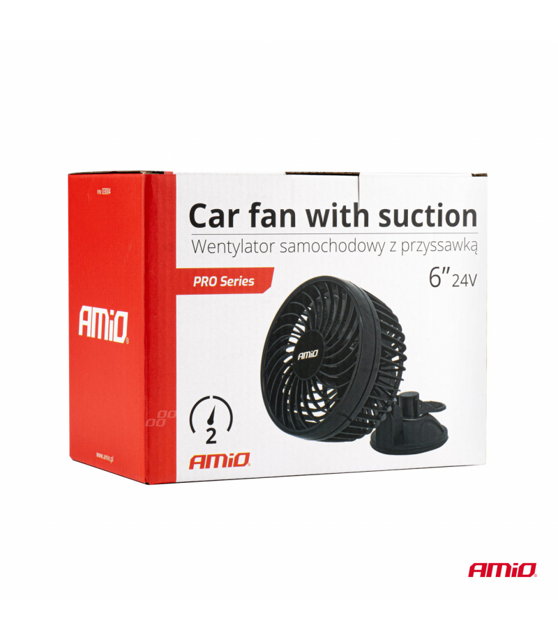 AMiO PRO WIATRAK WENTYLATOR SAMOCHODOWY ZASILANY Z ZAPALNICZKI SAMOCHODOWEJ 24V 15 CM MOCOWANY NA PRZYSSAWKĘ Doskonały, cichy a przy tym bardzo wydajny wentylator renomowanej firmy, zapewniającą silny podmuch powietrza, tak bardzo potrzebny każdemu w upalne dni kiedy podróżujesz samochodem lub stoisz w korku. Wentylator posiada dwa tryby prędkości , więc możesz wybrać taki, który będzie dla Ciebie najwygodniejszy. Solidna przyssawka dzięki której możemy zamocować wentylator...