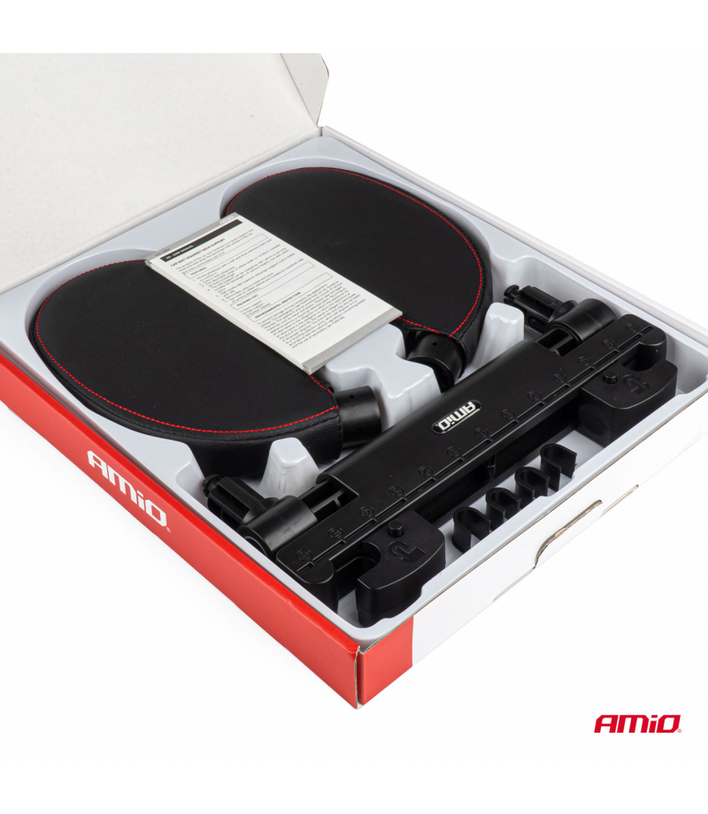 Bardzo prosty i intuicyjny montaż - mocuje się ją do prętów zagłówka samochodowego. Pasuje zarówno do przednich, jak i tylnych foteli pojazdu (oczywiście pod warunkiem, że zagłówki nie są zespolone z fotelem).