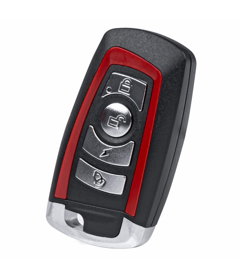 UNIWERSALNY 4-KANAŁOWY PILOT SAMOUCZĄCY, SAMOKOPIUJĄCY Z KODEM STAŁYM 433,92 MHZ. Z E S T A W Z A W I E R A: Pilot uniwersalny 4-kanałowy Kolor: czarno czerwony Uchwyt do zawieszenia klucz PRAKTYCZNY I WYGODNY Pilot ten jest idealnym rozwiązaniem dla osób które mają jeden działający pilot i chcą dorobić sobie drugi zapasowy. Posiada elegancką wytrzymałą obudowę z chromowanymi wstawkami . Pilot kopiuje sygnał pilotów (do bram, sterowników, alarmów, samochodów,...