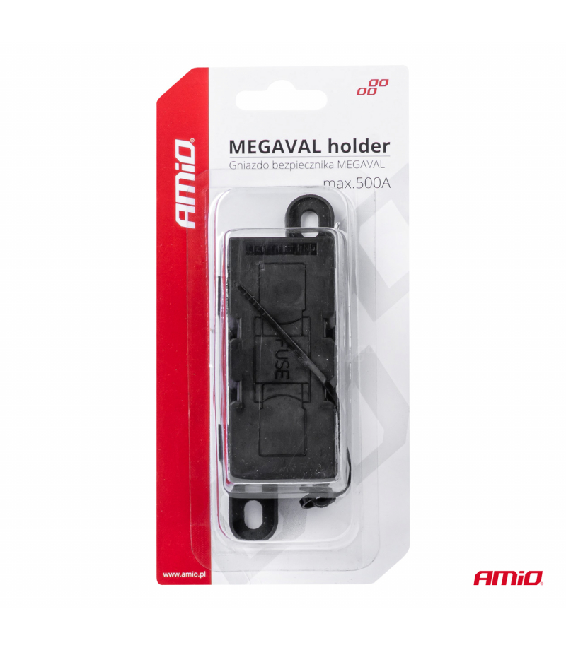Oprawa obudowa gniazdo bezpiecznika MEGAVAL AMIO-03507 Gniazdo Bezpiecznika Megaval MAX 500A Śruby: M8 Zgodność z dyrektywą: RoHS, EC Skrzynki można łączyć ze sobą Śruby i nakrętki - stal nierdzewna A2-70 Producent: AMiO Podatek...