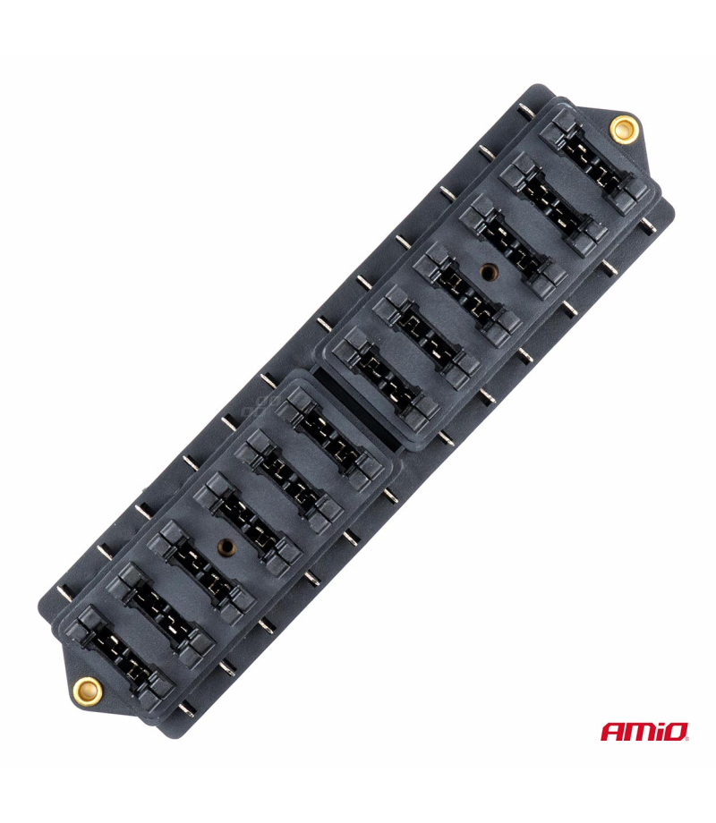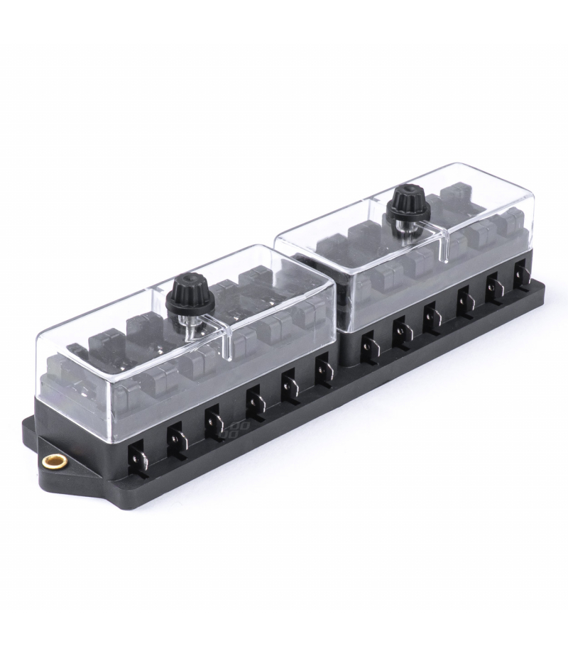SKRZYNKA BEZPIECZNIKOWA CERAMICZNA 12 GNIAZD UNIWERSALNA SKRZYNKA BEZPIECZNIKÓW Typ bezpiecznika: Płytkowy UNI/ATO 19mm ; standardowy Wymiar konektorów połączeniowych: 6,3 mm Ilość gniazd: 12 Rozstaw otworów montażowych: 203mm Rozmiar podstawy: 192mm x 52mm Zastosowanie: Maszyny rolnicze, traktory, kombajny, koparki, wózki widłowe, samochody osobowe, terenowe, ciężarowe, wozidła, quady, łodzie oraz inne dowolne pojazdy...
