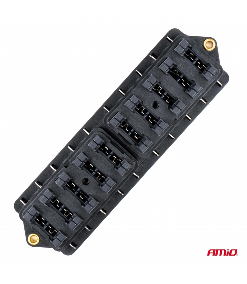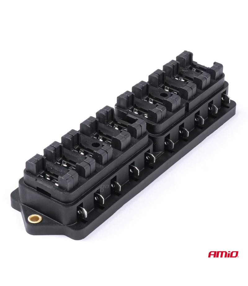 UNIWERSALNA SKRZYNKA BEZPIECZNIKÓW Typ bezpiecznika: Płytkowy UNI/ATO 19mm ; standardowy Wymiar konektorów połączeniowych: 6,3 mm Ilość gniazd: 10 Rozstaw otworów montażowych: 173mm Rozmiar podstawy: 162mm x 52mm Zastosowanie: Maszyny rolnicze, traktory, kombajny, koparki, wózki widłowe, samochody osobowe, terenowe, ciężarowe, wozidła, quady, łodzie oraz inne dowolne pojazdy mechaniczne. Skrzynka wykonana z wysokiej...