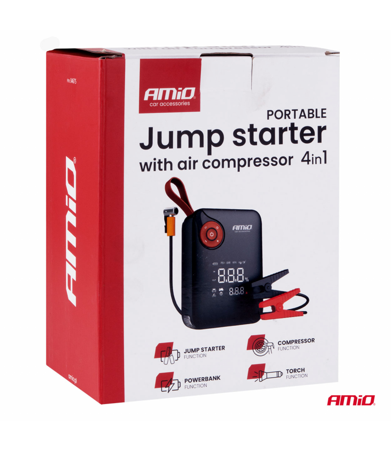 Urządzenie rozruchowe AMiO Mini 4w1 to kompaktowy i wszechstronny sprzęt, który łączy w sobie funkcje boostera rozruchowego, kompresora powietrza, powerbanku oraz latarki LED. Mimo niewielkich rozmiarów oferuje pełną funkcjonalność i wysoką wydajność, sprawdzając się zarówno w zastosowaniach warsztatowych, jak i w codziennym użytkowaniu.