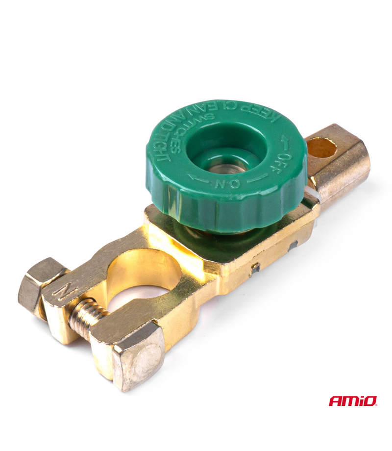 Przeznaczony do odłączenia prądu z akumulatora. Wystarczy jeden obrót plastikowym pokrętłem, a zniwelujemy pobór prądu, co z kolei zabezpieczy baterie przed rozładowaniem.