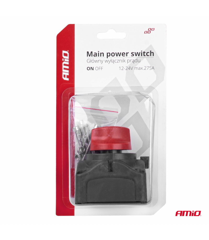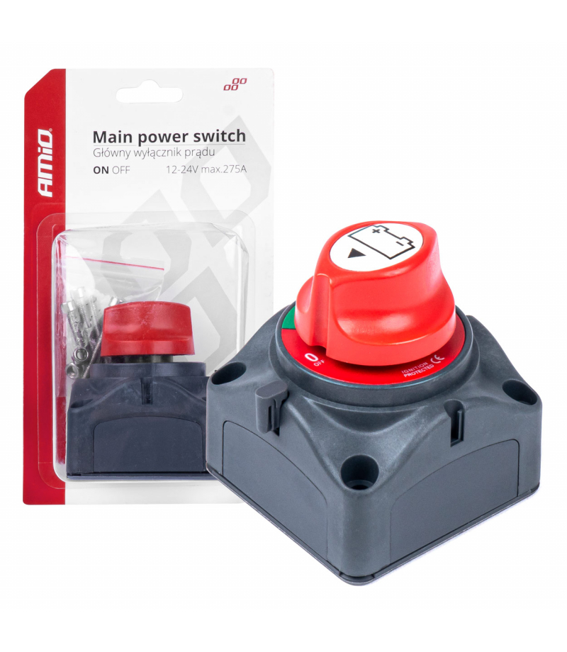 Bezpieczne użytkowanie: Wł. Wył. 2 pozycje, napięcie robocze 12-24 V, prąd znamionowy 275 A , maksymalny prąd chwilowy 1000 A. Przyłącze M10 Napięcie: 12/24V Zastosowanie w instalacji elektrycznej pojazdów osobowych, ciężarowych, maszynach rolniczych i budowlanych, przyczepach kempingowych, łodziach motorowych itp. gdzie potrzebna jest możliwość odcięcia dopływu prądu. Rozłączenie - Jednym prostym ruchem ręki i obwód masy jest przerwany np.: przed przystąpieniem do...